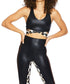 The Maeve Leopard Top by Beach Riot elevates your workout wardrobe with its unique animal pattern and chic faux leather look. This racerback sports bra features a standout leopard strap and a complementary chocolate brown back detail. Crafted from a high-performance 79% nylon, 21% Lycra® spandex blend for flexibility and support. Hand wash only to maintain its quality.