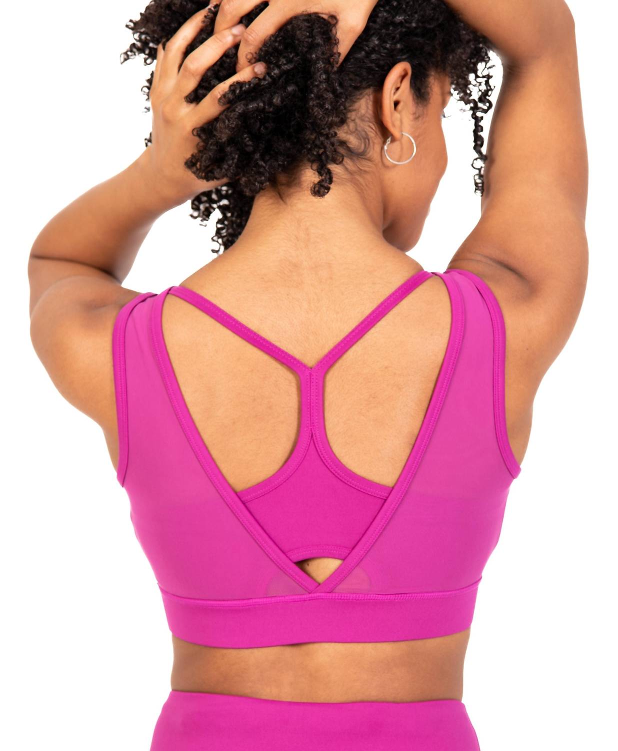 Introducing the Recycled Polyester Double Layer Bra Top With Mesh by Body Wrappers, a perfect fusion of sport and style. Made from 75% recycled polyester and 25% spandex, this bra top provides support and softness with a stylish mesh insert at the front. Available in berry, this athleisure essential is ideal for your fitness or workout sessions. Care: Machine wash.