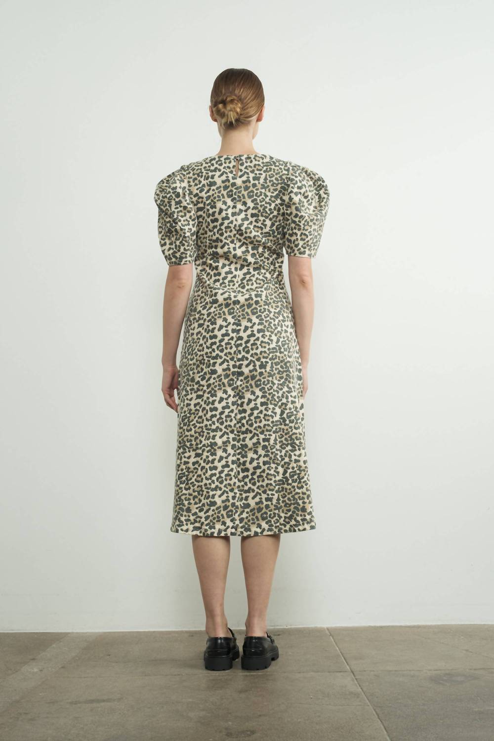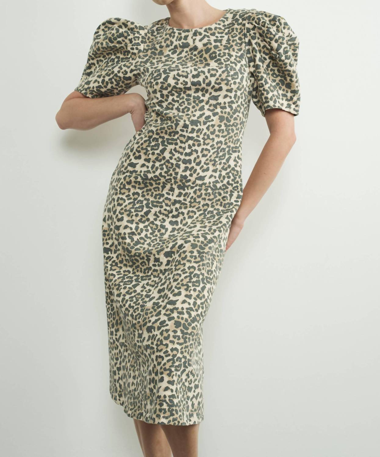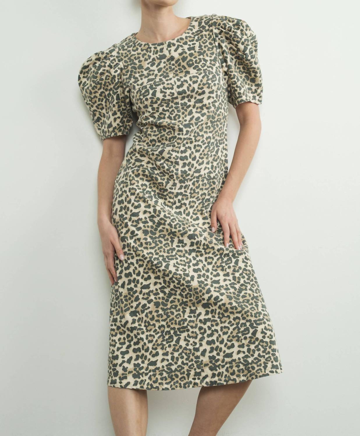 The perfect length dress does exist. Introducing the Aaron & Amber Puff Sleeve Midi Dress, a statement piece in a captivating animal print perfect for your next holiday party. This dress boasts short sleeves, made from a cotton blend for comfort, and features a flattering A-line silhouette that falls to a midi length. It includes a crewneck and a playful keyhole at the back, secured with a button closure. To keep this maximalist piece in top condition, hand wash and line dry.