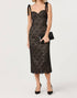 The Donne Floral Lace Midi Dress by ASTR in Black Nude is an elegant choice for any special occasion. This sleeveless dress showcases intricate floral lace over a nude lining and a flattering sweetheart neckline, complete with velvet self-tie bow straps for a feminine touch. Made of 100% Polyester with a 90% Polyester and 10% Elastane contrast, it includes sewn-in cups with underwire, a lace-up back, and a concealed side zipper closure. Length: 48.5"; Bust: 32"; Waist: 28". Care: Dry clean only. Model is wearing a size small at a height of 5'8".