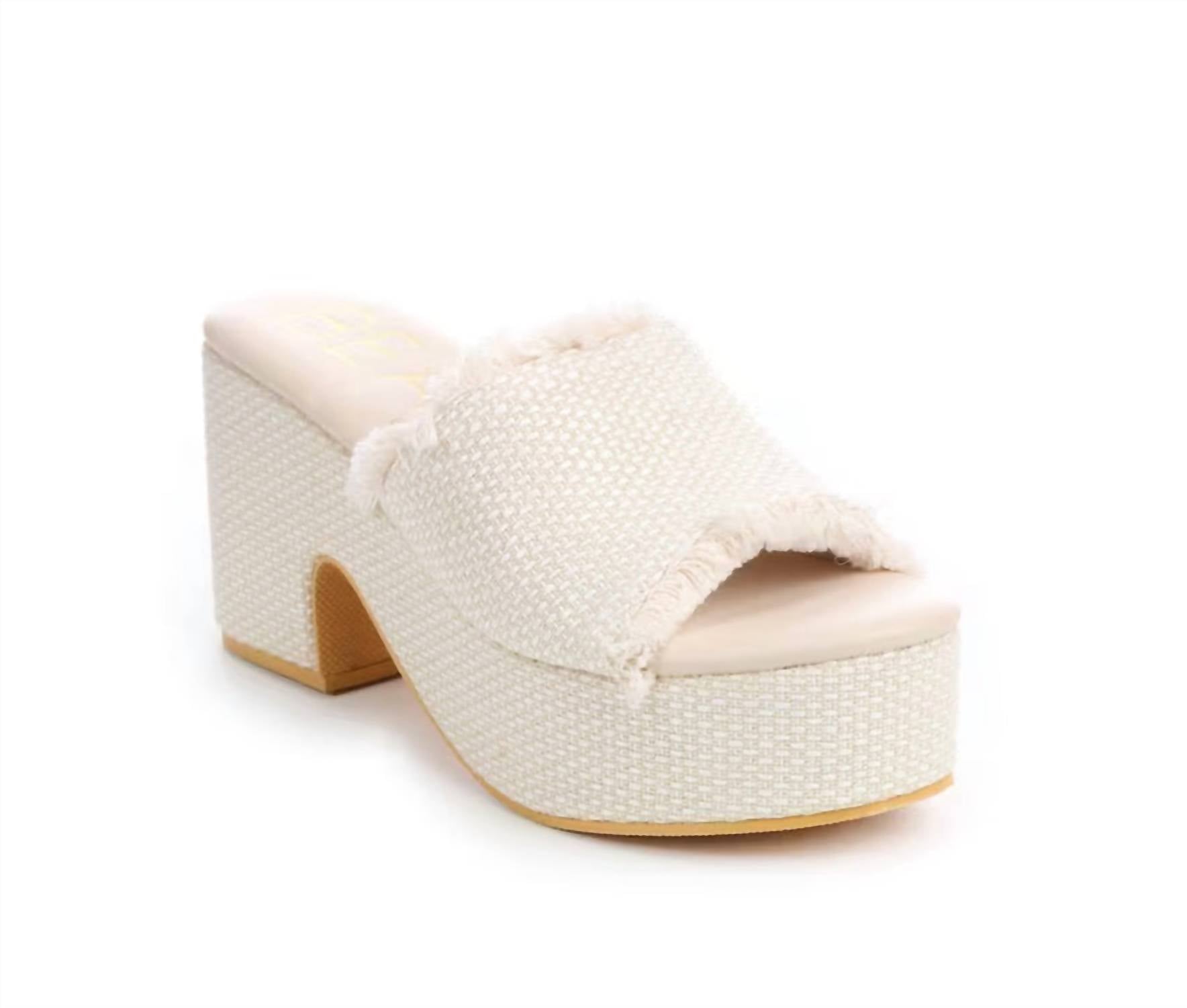 Step into boho chic style with the Women's Terry Block Heel Sandal by Beach by Matisse. These beige sandals, crafted from faux leather, feature a single playful strap and a comfortable synthetic man-made outsole. Easy to slip on, they boast a 3.5" block heel and an approximate 2" platform, perfect for adding height without sacrificing comfort thanks to the padded insole. Ideal for summer outings, they pair effortlessly with casual wear or more dressed-up holiday occasions like Thanksgiving.