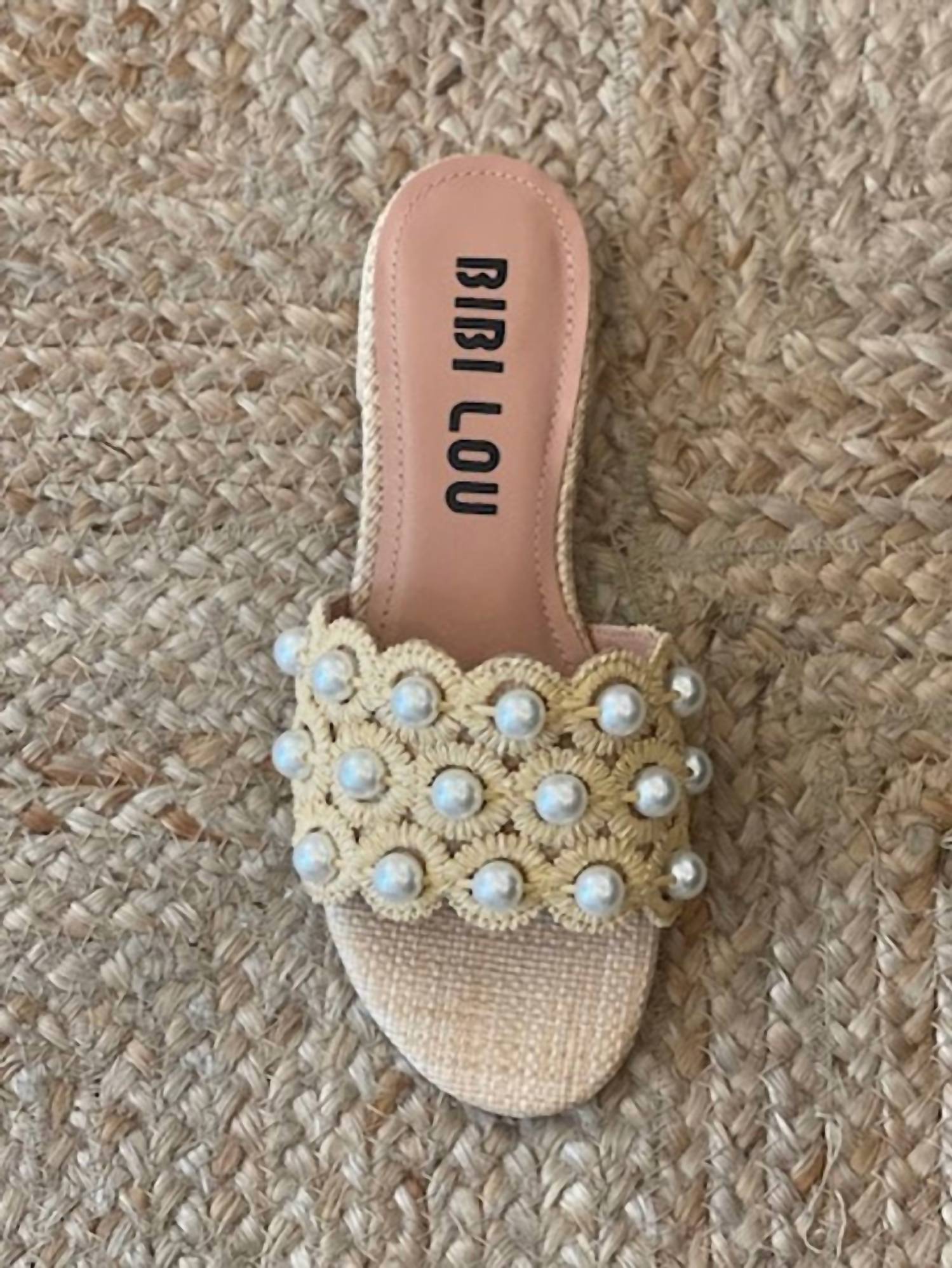 Flowy dresses, cropped pants, and even jumpsuits... this sandal works with them all! Step out in style with the Women's Katie Flat Raffia Sandal by Bibi Lou, a chic addition to your footwear collection. These sandals showcase a natural/pearls colorway with a flat heel for comfortable all-day wear. Crafted from elegant raffia with an open toe design, they're perfect for boho chic vibes during spring occasions. Embrace their versatility, whether you're attending a baby shower or celebrating the 4th of July.