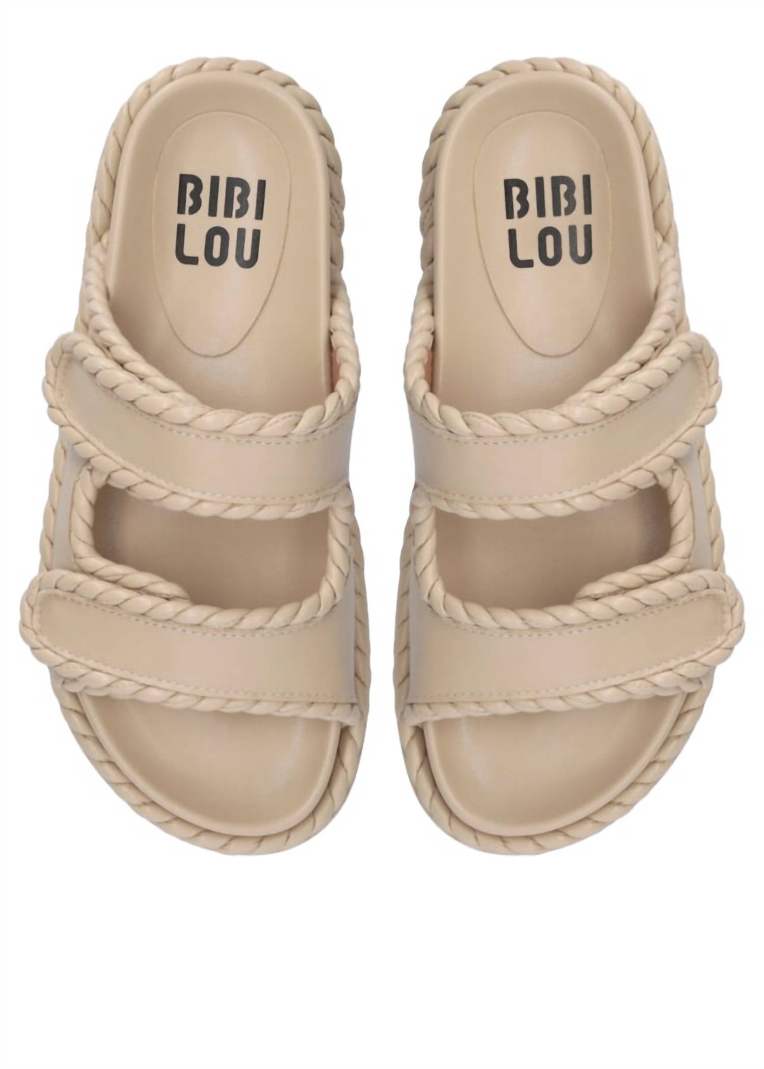 Flowy dresses, cropped pants, and even jumpsuits... this sandal works with them all! Step into summer with the Women's Lama Slide Sandals by Bibi Lou, a stylish choice in a chic camel hue. Crafted from durable faux leather, these sandals feature a trendy twist detail and synthetic chunky sole for added flair. Designed with an open toe and flat heel, they're perfect for minimalist vacation vibes. The convenient velcro closure ensures a secure fit.
