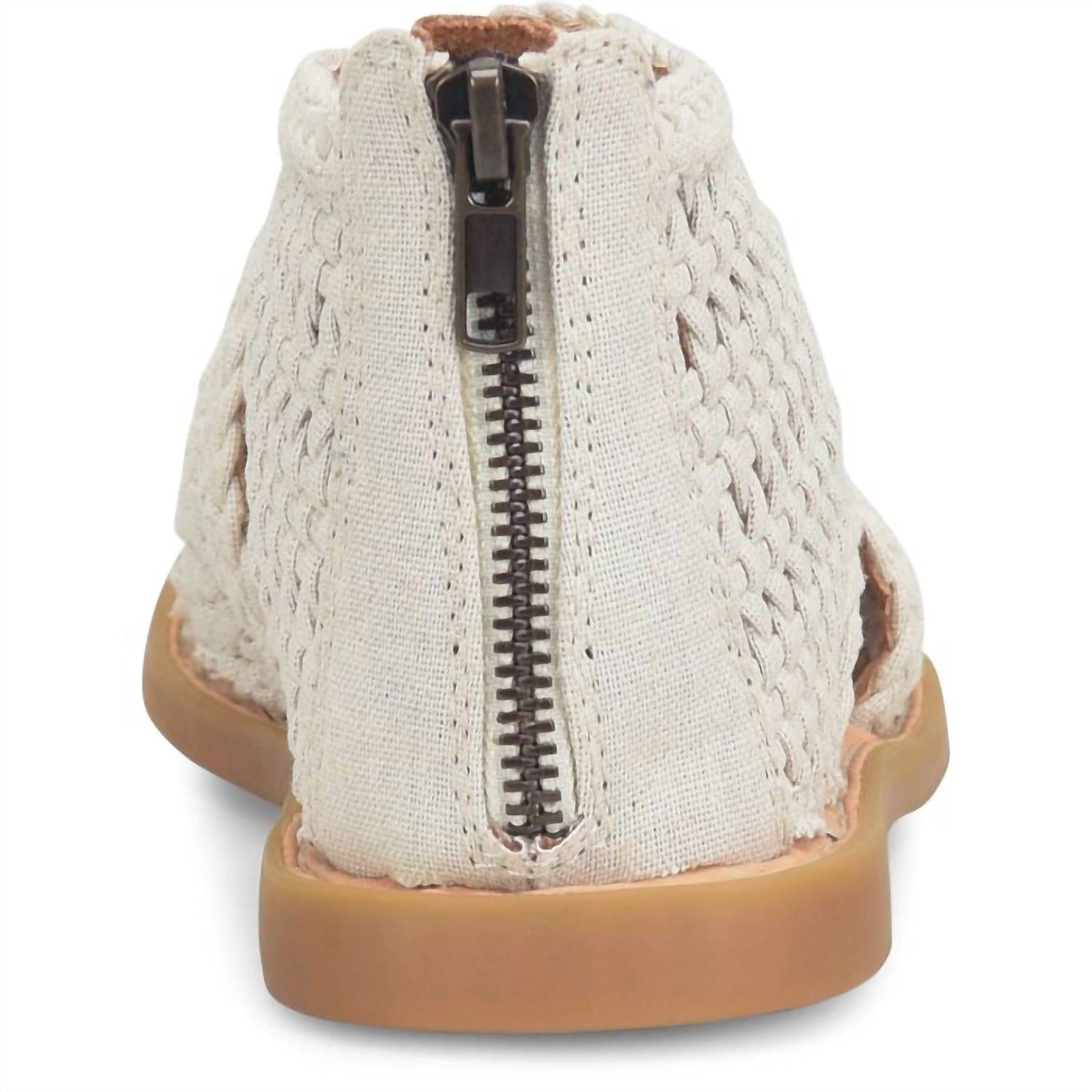 Classicly cute and all-day-wearable. We love this sandal. Introducing the Women's Iwa Mac Sandal by Born, a perfect blend of style and comfort for your summer wardrobe. This cream fabric sandal features a soft, hand-finished woven upper and a breathable combination lining of suede and unlined sections. It highlights a leather-covered cushioned footbed with extra foam for added comfort and a high traction lightweight rubber outsole. Designed with Opanka hand-crafted construction, its 1/2 inch flat heel ensures ease and style for any vacation or Mother's Day occasion.