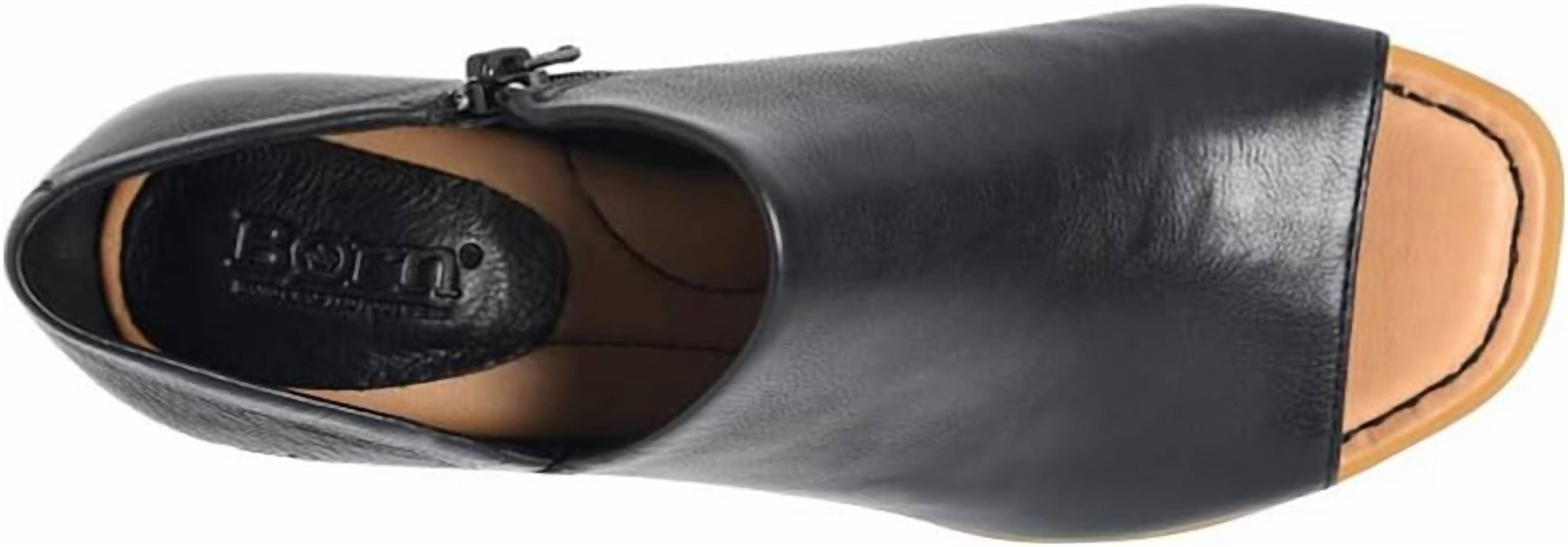Don't be deceived, these heels are comfy as can be. Step into versatile elegance with the Women's Sage Sandal by Born, an essential addition for the fall wardrobe. These shootie-style sandals feature a soft hand-finished full grain leather upper paired with an imported high-traction rubber outsole, boasting a chic peep toe design. With a 2-inch leawood stacked wrapped block heel, they perfectly blend style and comfort, making them ideal for special occasions like a baby shower or Valentine's Day dinner. Closure is ensured with a convenient zipper, and the sandals come in a timeless monochrome black hue.