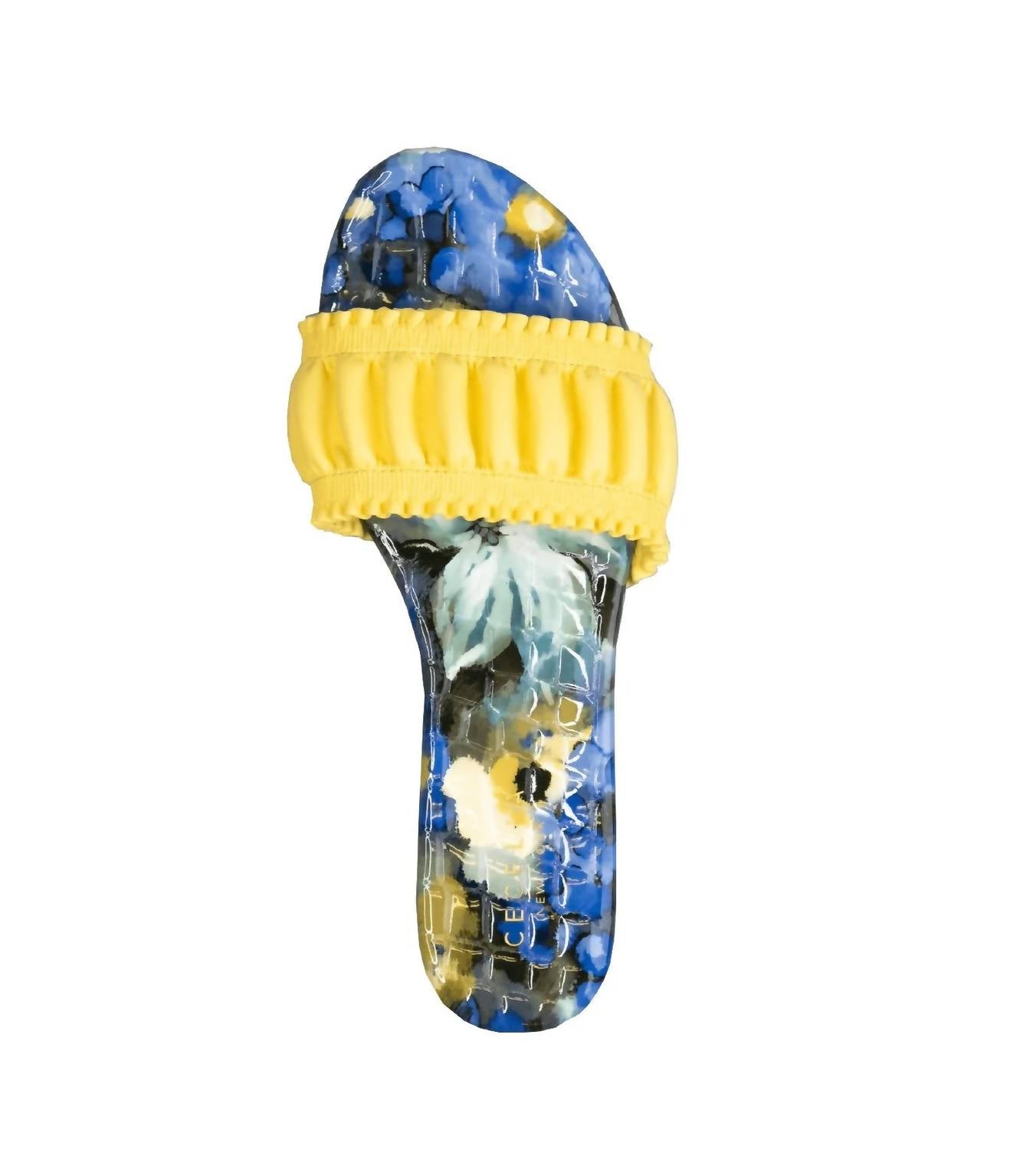 Flowy dresses, cropped pants, and even jumpsuits... this sandal works with them all! Introducing the Women’s Liberty Slip On Open Toe Slide Sandals by CECELIA NEW YORK, where style meets comfort. These sandals showcase a chic leather ribbon upper in a vibrant Yellow Blue Flower print, complemented by a subtle 0.5-inch flat heel. Slip-on style ensures ease, while the patent leather and memory foam insole offer lasting comfort perfect for all-day wear. Ideal for pairing with dresses or denim, these sandals are a versatile choice for any summer occasion.