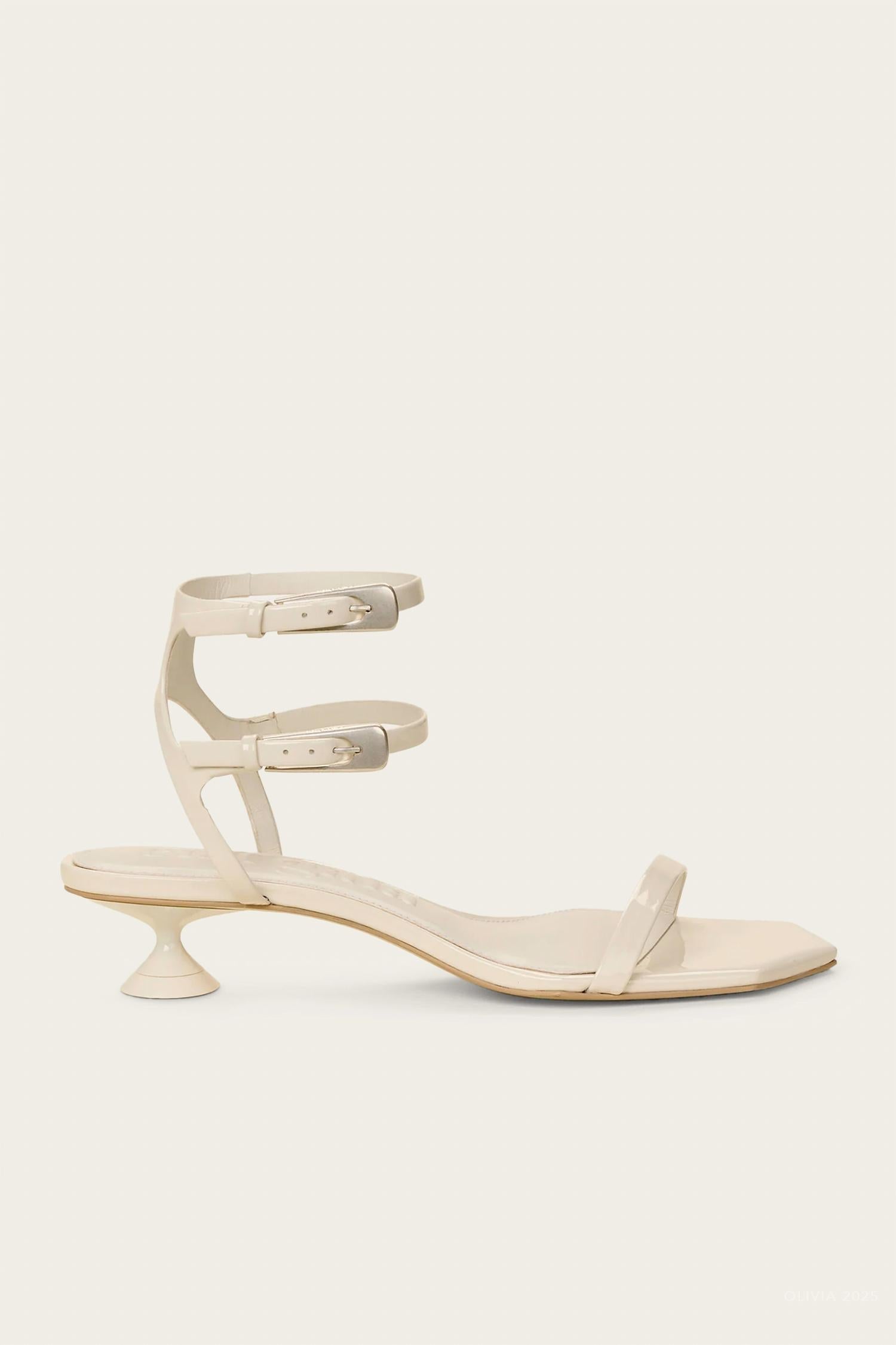 This sandal will take you from brunch to dinner and everything in between. Introducing the Women's Torina Sandal by Cult Gaia, a chic addition to any minimalist wardrobe. Crafted in a sophisticated antique white, this sandal features an upper made from 100% cow leather and an outsole of 100% reconstituted leather. The design includes a stylish kitten heel and open toe, perfect for summer occasions like back to school. This imported sandal follows American sizing.