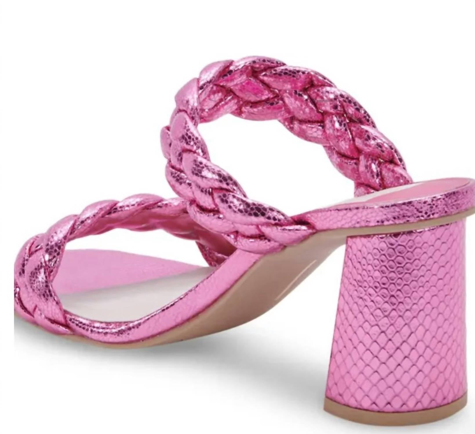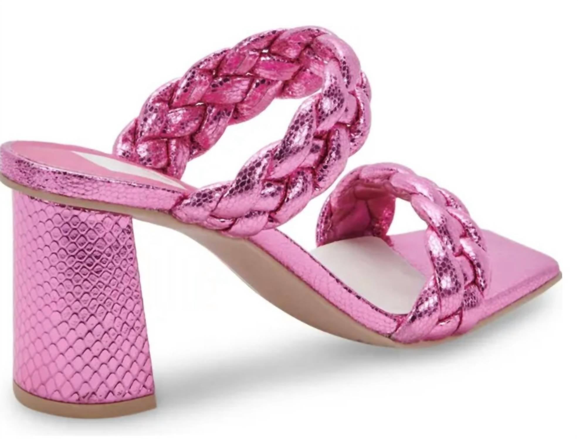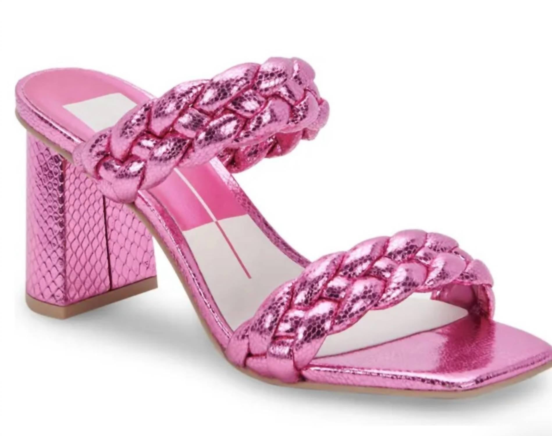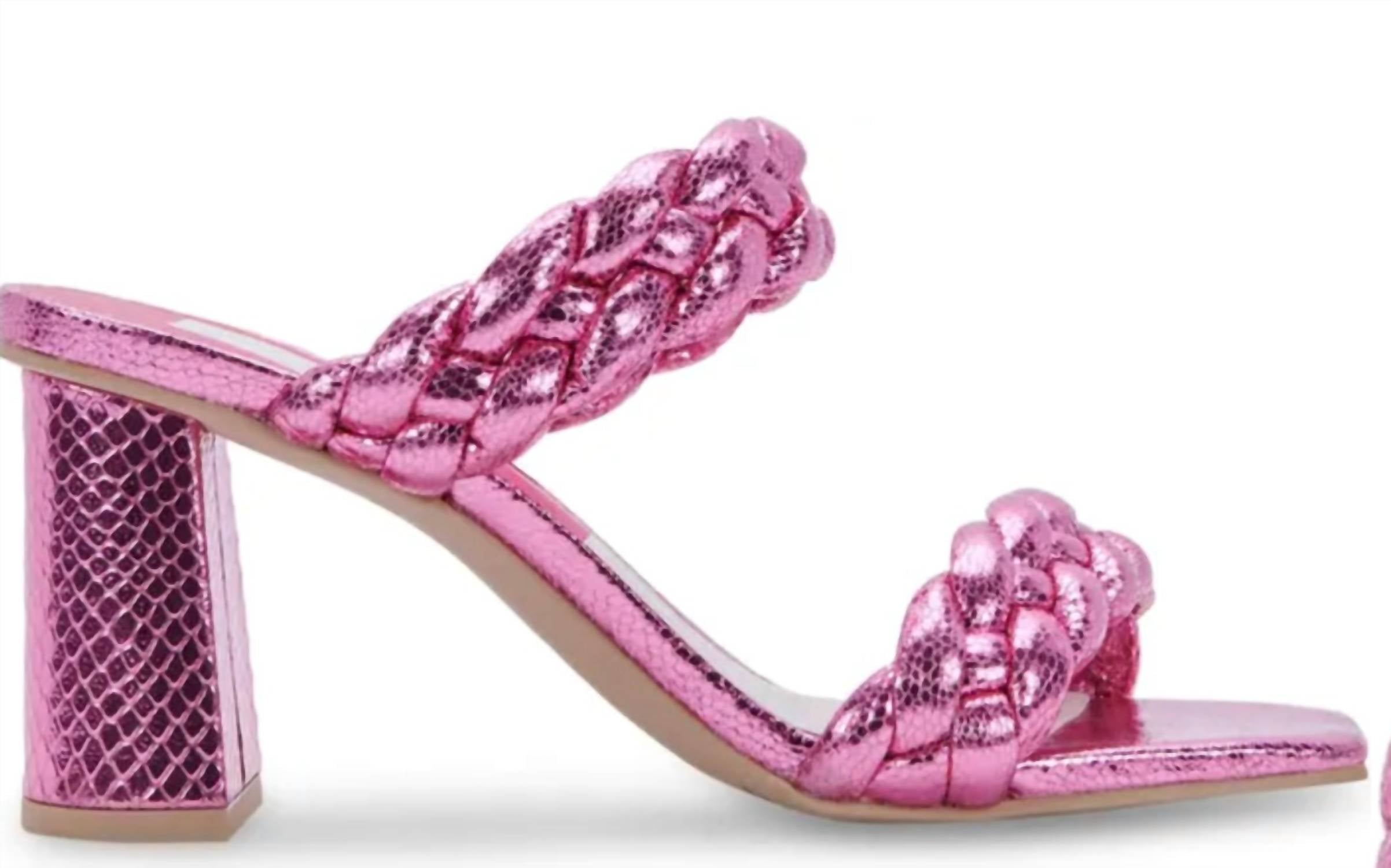 Don't be deceived, these heels are comfy as can be. Step into the spotlight with the Women's Paily Heeled Sandal by Dolce Vita, now more captivating than ever. This new-season addition takes the classic bestselling style to new heights with glam metallic materials that catch the light in a mesmerizing play of shine. Whether you're gliding through a sunlit brunch or lighting up the dancefloor at night, the Magenta Crackled Stella hue ensures all eyes are on you. Crafted with a synthetic upper and lining, and supported by a rubber outsole, these sandals promise durability without compromising on elegance. The 3.2-inch heel elevates your look while offering graceful lift and comfort. Make an effortless statement and let your style shine with the Paily Heeled Sandal.
