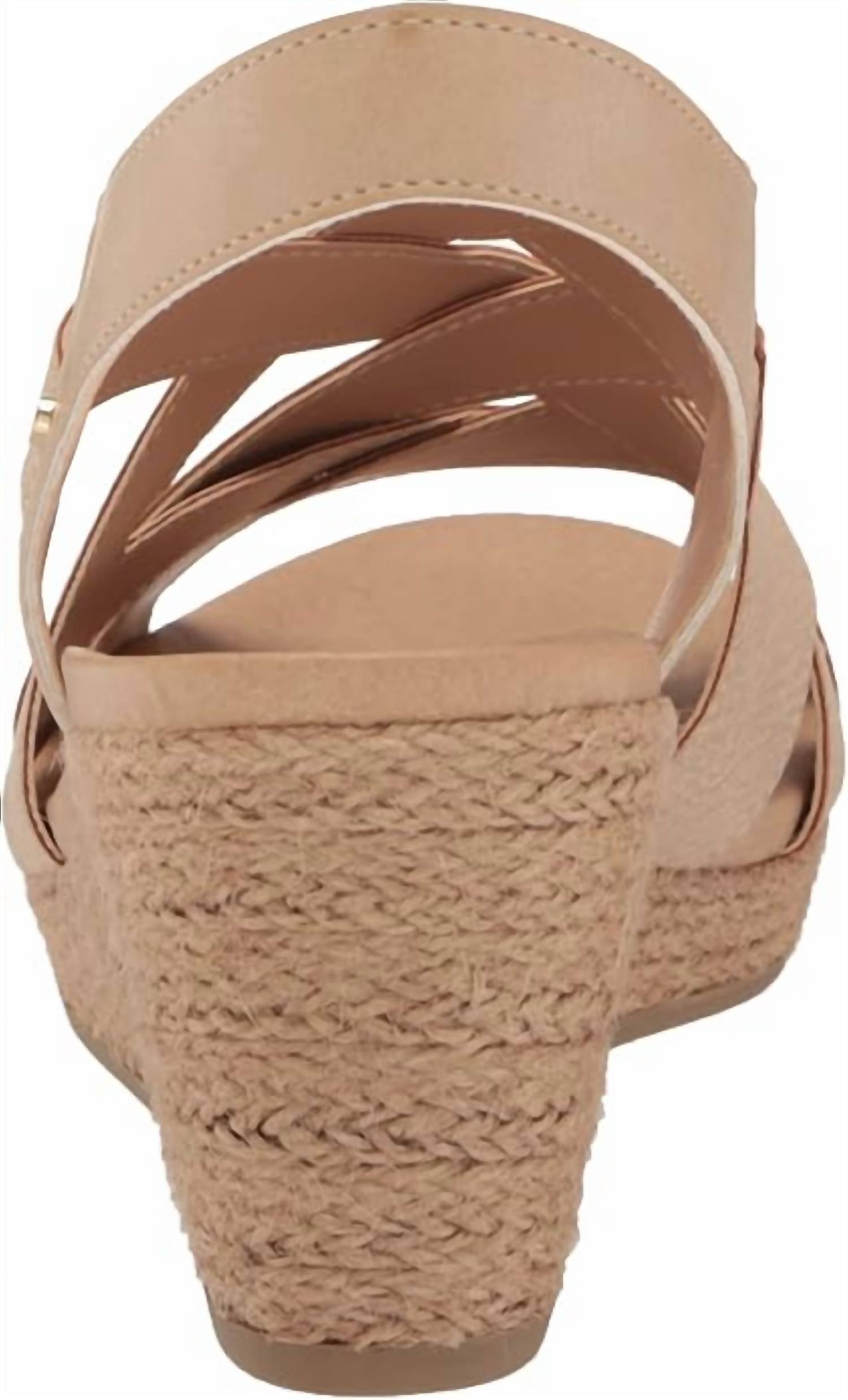 This sandal will take you from brunch to dinner and everything in between. Step into sustainable style with Dr. Scholl's Women's Everlasting Open Toe Slingback Wedge Sandals in Cuban Sand Smooth. These minimalist sandals feature a slip-on fit with crisscross straps and a convenient stretch gore strap for easy on/off access. Crafted from eco-friendly faux leather with low-chemical linings and topcloth, they offer an anatomically cushioned insole for all-day comfort and support. With a stylish 2.5-inch espadrille wedge heel, these sandals are perfect for summer dinner parties and Thanksgiving gatherings.