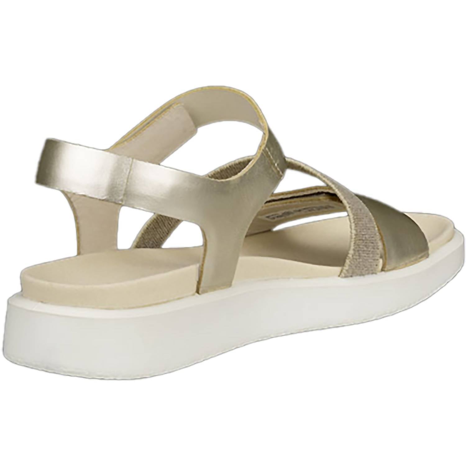 Flowy dresses, cropped pants, and even jumpsuits... this sandal works with them all! Discover the Ecco Flowt Women's Sandals, a sleek addition to any wardrobe with a minimalist design and constructed from soft, rich leather. These Pure White Gold sandals feature convenient quick fastening toe and ankle straps, providing an adjustable fit with a feminine flair, perfect for summer vacations or Easter gatherings. The natural fiber-wrapped elastic band ensures flexibility with every step, while the soft microfiber footbed offers easy maintenance and immediate comfort. Crafted for style and ease, these flat, open-toe sandals capture modern trends effortlessly.