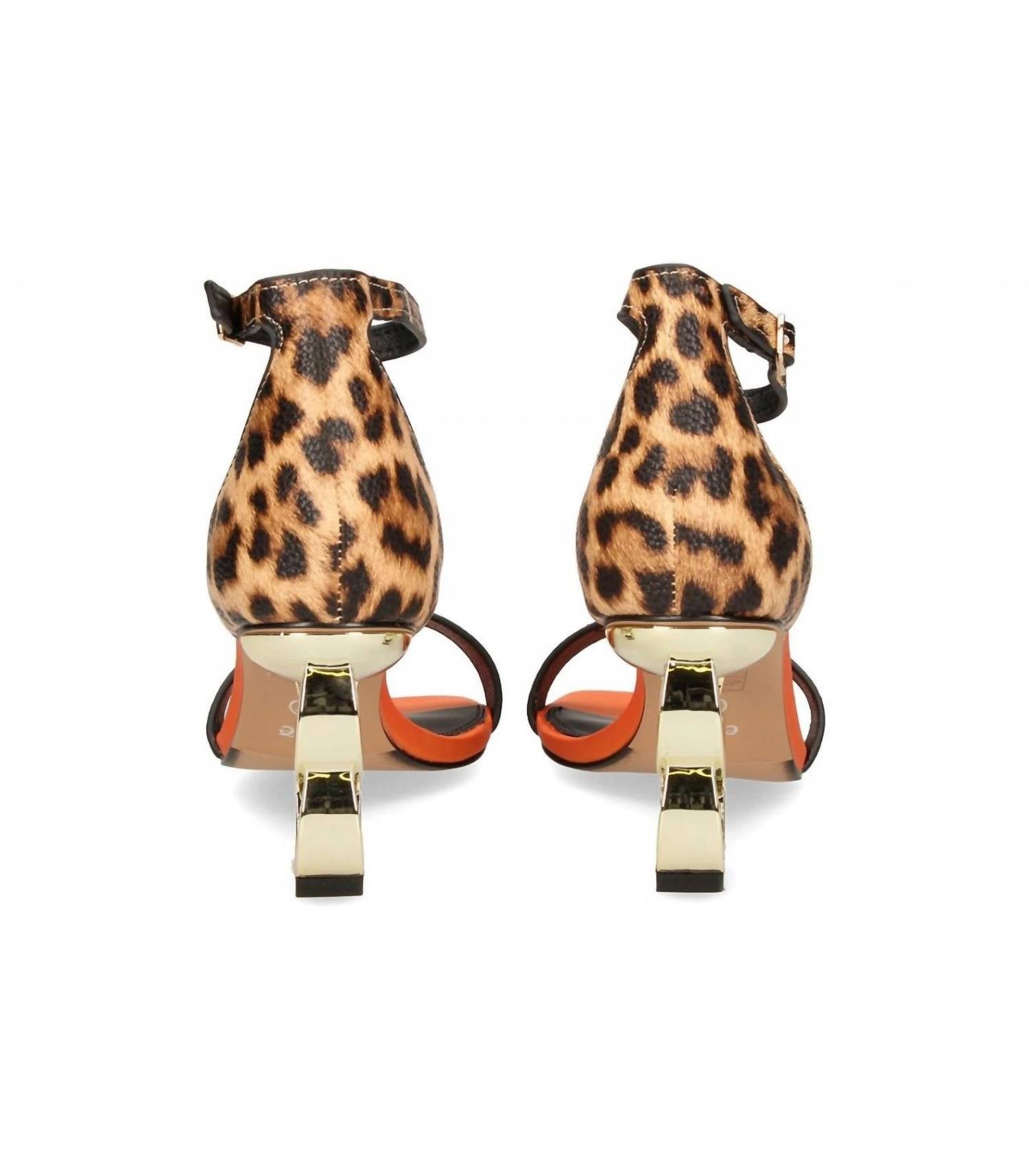 Pair these beauties with your favorite skinny jeans or dress for a night out on the town. Step into style with the Women's Lilian 055 Heel Sandal by Exe, a vibrant choice for your summer wardrobe. Featuring a trendy kitten heel, this sandal is crafted from synthetic material in a bold orange with leopard accents and a gold heel adorned with circular shapes. Designed with an ankle buckle closure for a secure fit and a comfortable leather insole, it’s ideal for cocktail party occasions. Whether you're embracing the maximalist trend or looking to elevate an ensemble, this sandal offers both flair and comfort with its open toe silhouette.