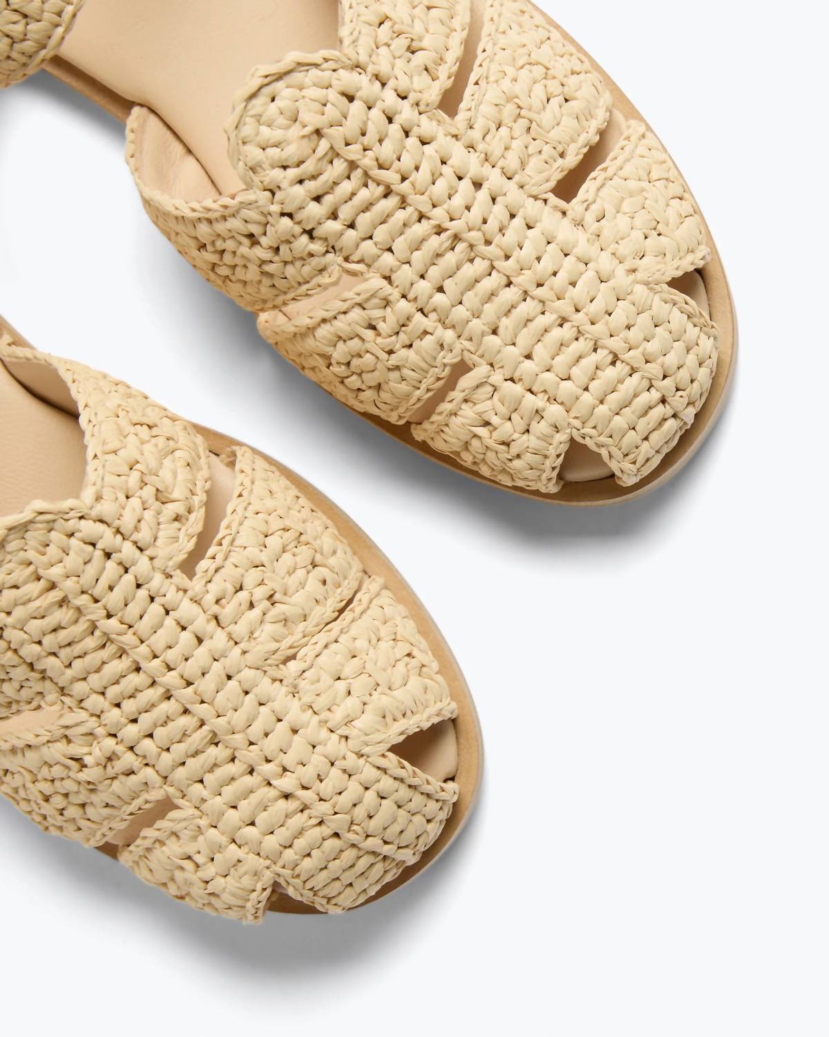 Classicly cute and all-day-wearable. We love this sandal. Introducing the Women's Sera Fisherman Sandal by FREDA SALVADOR, an exquisite minimalist addition designed for vacation style. Crafted from 100% natural handwoven raffia and Spanish leather, this sandal offers comfort with a round toe and medium shoe width. The durable leather sole features a rubber spay for longevity, complemented by a subtle 0.25" flat heel. Ideal for summer getaways or Thanksgiving gatherings, this sandal embodies timeless elegance in its natural raffia color.