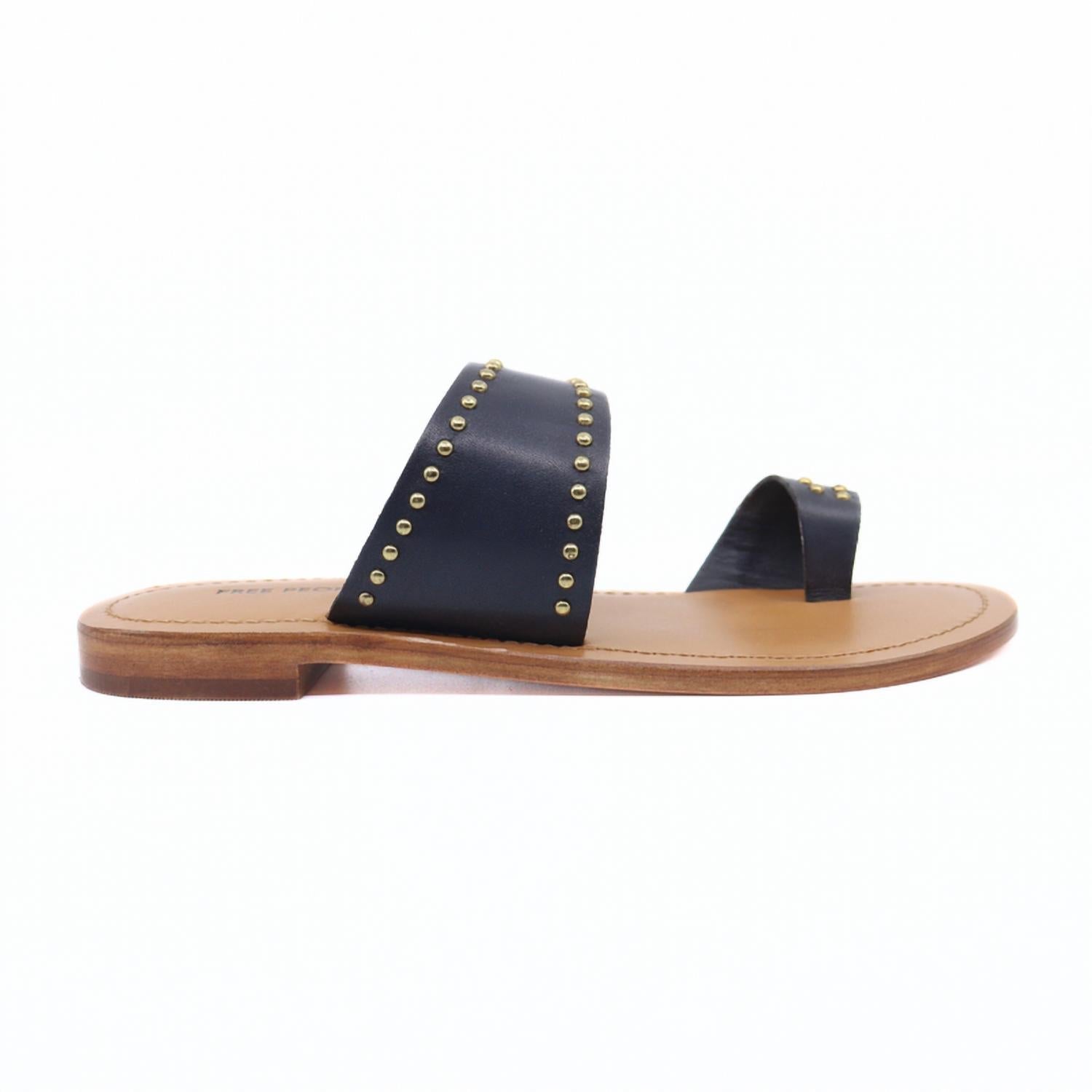 Classicly cute and all-day-wearable. We love this sandal. These slide-on sandals add a bold yet effortless edge to your look with studded leather straps, a sleek toe ring, and a low block heel. Their minimalist design and unique details strike the perfect balance between cool and refined, making them an instant wardrobe staple.