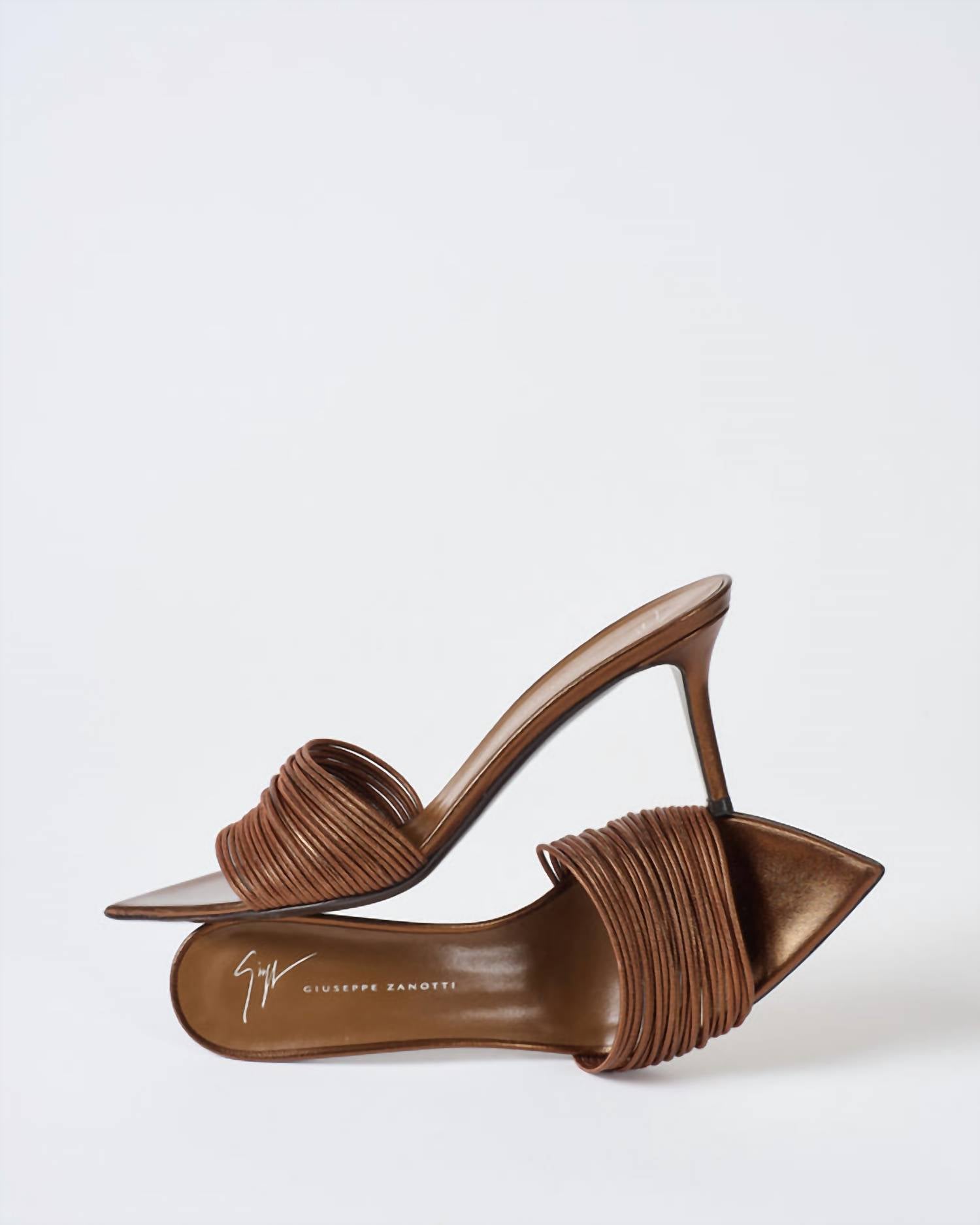 This sandal will take you from brunch to dinner and everything in between. These heeled mules are crafted from laminated leather and designed with a pointed toe for a sharp, modern finish. A thin leather strip detail adds subtle texture, elevating the minimalist silhouette with refined style.