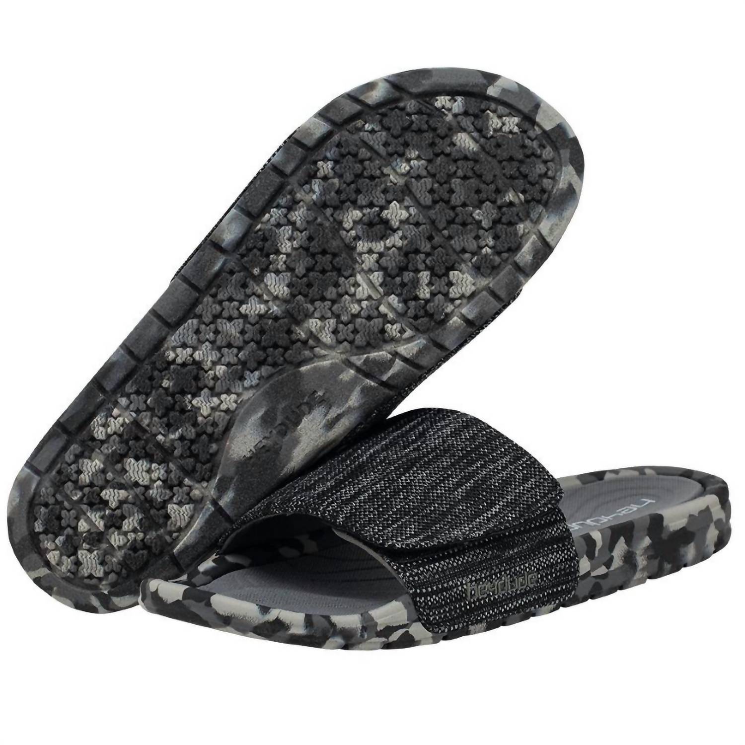 Introducing the Youth Phoenix Slide Sandal by HEY DUDE, a perfect blend of comfort and style for boys. These sandals feature an adjustable Velcro upper and a 3D printed strap for a customizable fit, while the smooth, mesh-lined footbed ensures long-lasting comfort. Enjoy the ease of slipping on these sandals, which are designed with Flex & Fold Technology and an ultralight outsole. Available in a striking Dark Quarry Camo, please note that dye may transfer to your feet.