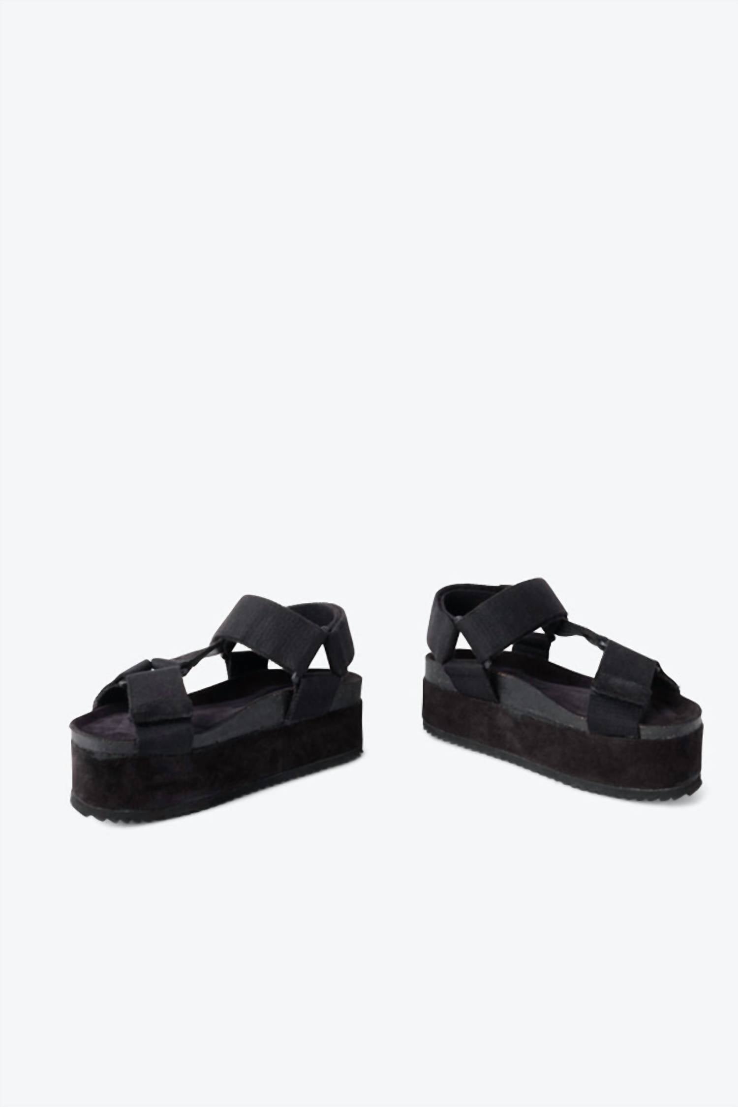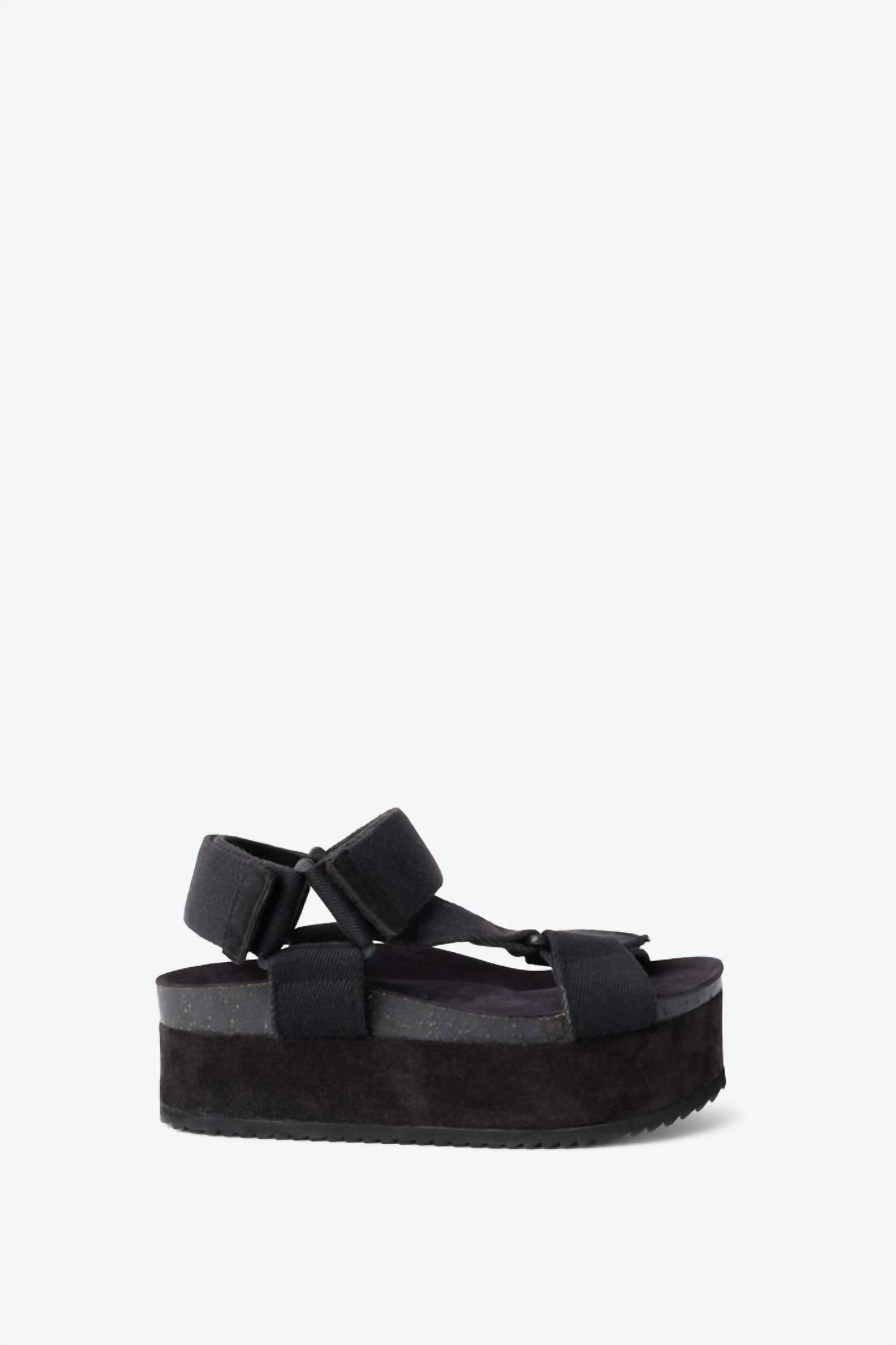 Intentionally Blank Zona Women's Platform Sandal is a chunky platform sandal with oversized strapped. While the platform is trendy, it is also lightweight allowing you to walk around with ease. Go with the black for an edgier look or the chestnut for a bohemian style. Pair them with cropped jeans or a maxi skirt to look effortlessly cool. Textile upper, Suede platform, Fully adjustable velcro straps ensure a perfect fit, Memory foam footbed, Heel 3 in
