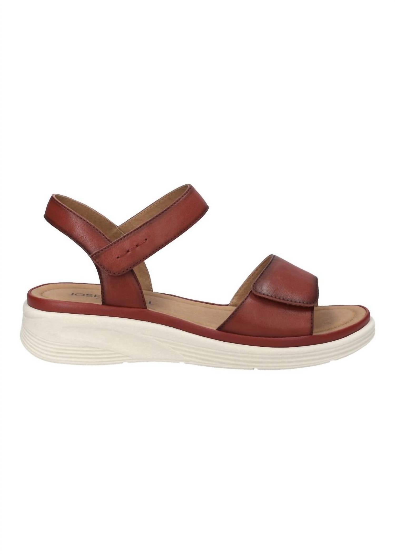 This sandal will take you from brunch to dinner and everything in between. Step into sunshine with the Women's Sevran 01 Sandal by JOSEF SEIBEL, perfect for those seeking both style and comfort in hibiscus. These sandals feature a full grain leather upper with leather lining, ensuring a premium feel, accompanied by a padded memory foam footbed for ultimate comfort. The design includes two adjustable hook & loop straps for a customized fit and a lightweight, flexible EVA outsole, making them ideal for all-day wear. Perfect for summer vacations with a boho chic vibe and a wedge heel that complements any open toe look.