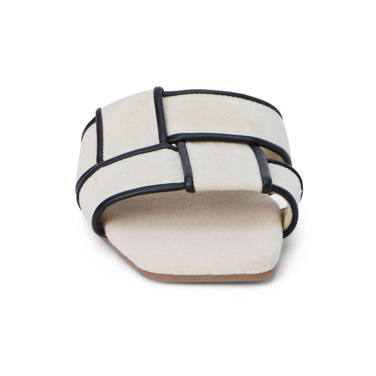 Classicly cute and all-day-wearable. We love this sandal. The Matisse Women's Biscayne Slide Sandals are your go-to for minimalist elegance this summer. Featuring a chic woven band and squared toe design, these sandals are crafted with a linen and leather upper, complemented by a leather lining and padded insole for all-day comfort. The slip-on style ensures ease of wear, while the manmade outsole adds durability. Made with quality craftsmanship and imported materials, these flat heel sandals are perfect for a New Year's Eve dinner party or any stylish occasion.
