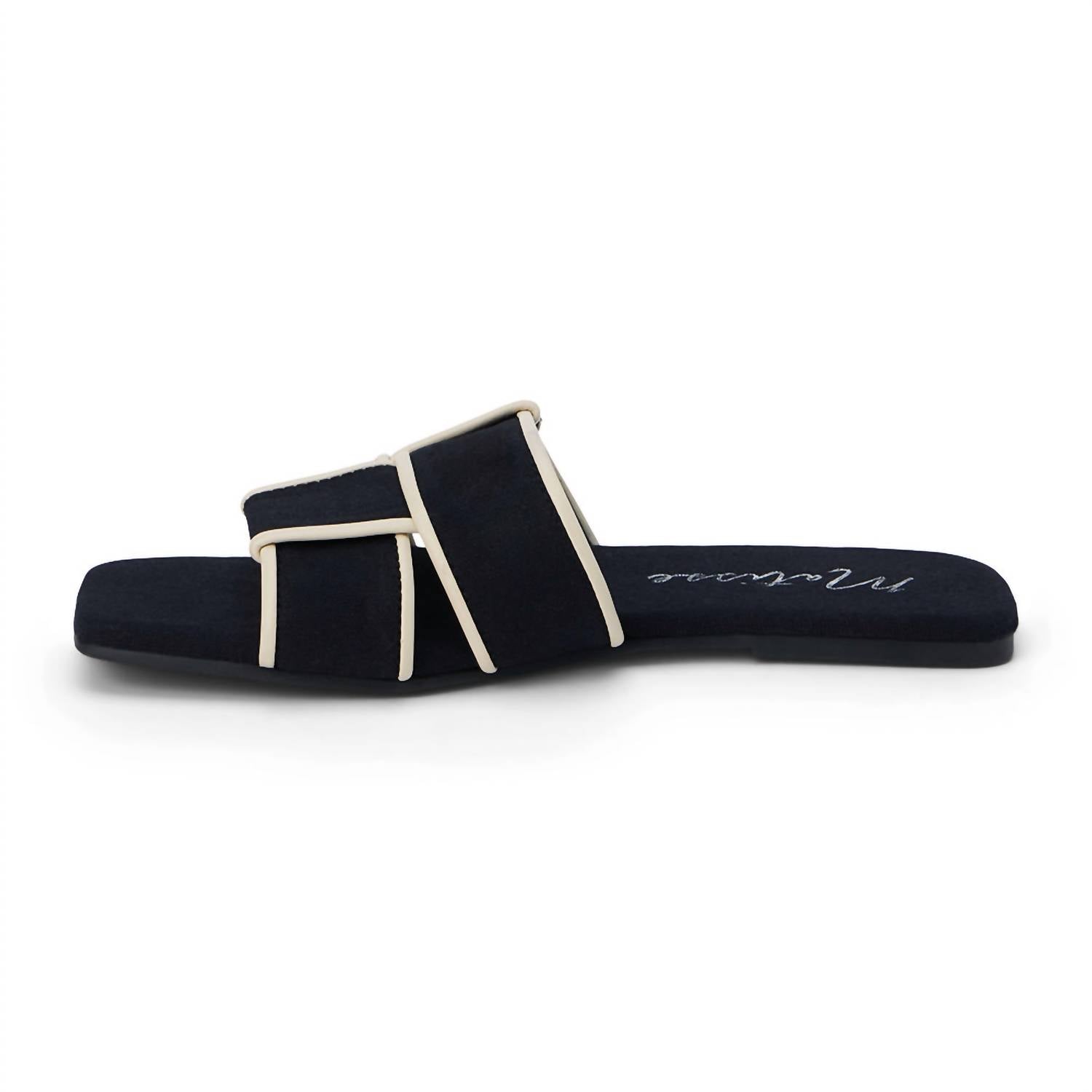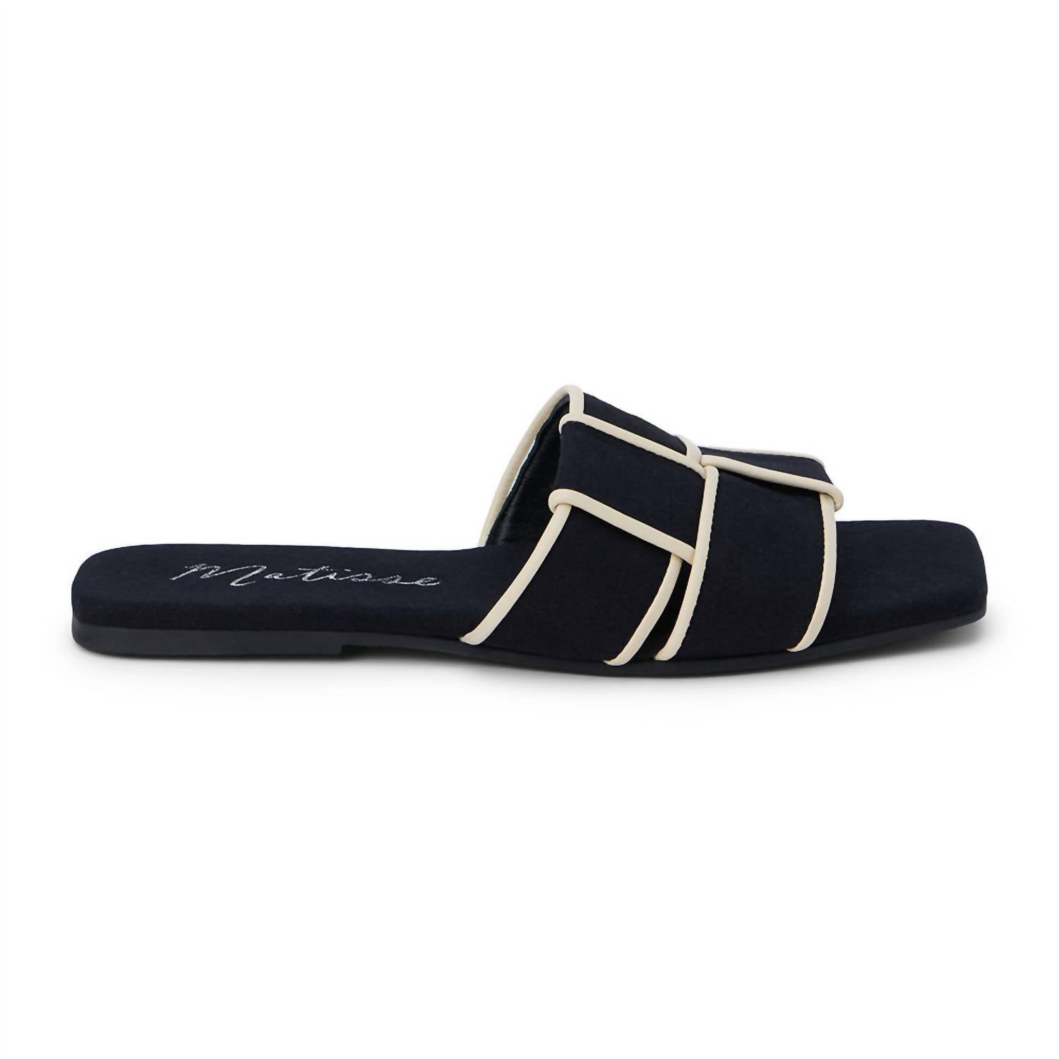 Flowy dresses, cropped pants, and even jumpsuits... this sandal works with them all! The Matisse Women's Biscayne Slide Sandals in Black are your go-to for minimalist elegance this summer. Featuring a chic woven band and squared toe design, these sandals are crafted with a linen and leather upper, complemented by a leather lining and padded insole for all-day comfort. The slip-on style ensures ease of wear, while the manmade outsole adds durability. Made with quality craftsmanship and imported materials, these flat heel sandals are perfect for a New Year's Eve dinner party or any stylish occasion.