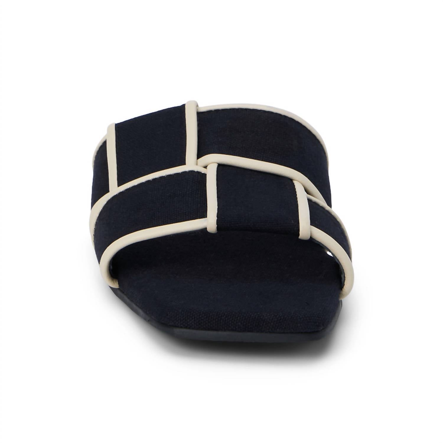 The Matisse Women's Biscayne Slide Sandals in Black are your go-to for minimalist elegance this summer. Featuring a chic woven band and squared toe design, these sandals are crafted with a linen and leather upper, complemented by a leather lining and padded insole for all-day comfort. The slip-on style ensures ease of wear, while the manmade outsole adds durability. Made with quality craftsmanship and imported materials, these flat heel sandals are perfect for a New Year's Eve dinner party or any stylish occasion.