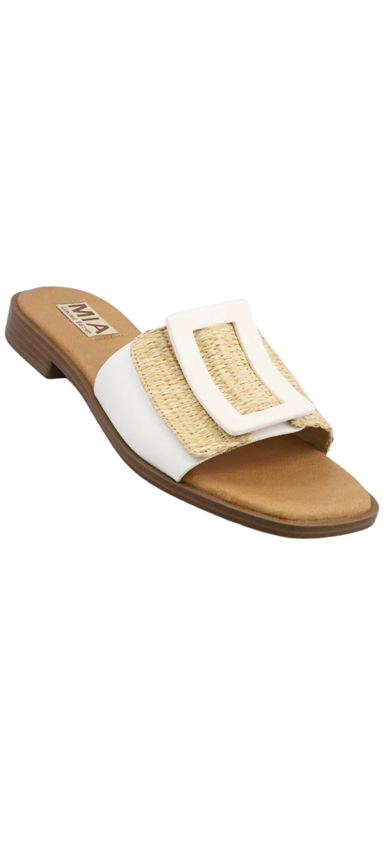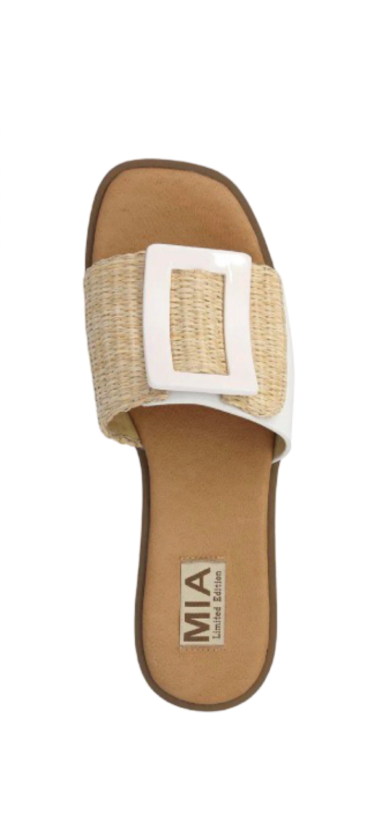 Classicly cute and all-day-wearable. We love this sandal. Introducing the MIA Barbados Raffia Sandal, the perfect blend of playful design and effortless style. Crafted with a unique raffia material, these sandals in White/Natural are designed with a squared toe and flat heel for ultimate comfort and chic appeal. Ideal for adult women seeking to add a fun twist to their everyday outfits. Step out confidently and let your style shine.