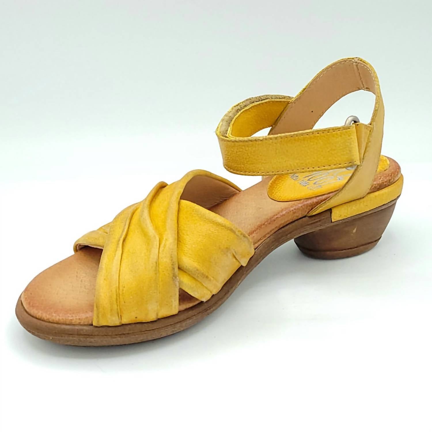 Classicly cute and all-day-wearable. We love this sandal. Trendy and sophisicated, the Miz Mooz Collette is a must-have addition to your sandal collection. The ruched leather criss cross straps create a peep-toe silhouette, while the hook and loop fastener allows for effortless adjustability and a custom fit. Leather Upper Leather Lining Man Made Sole 2" Heel Made in Europe