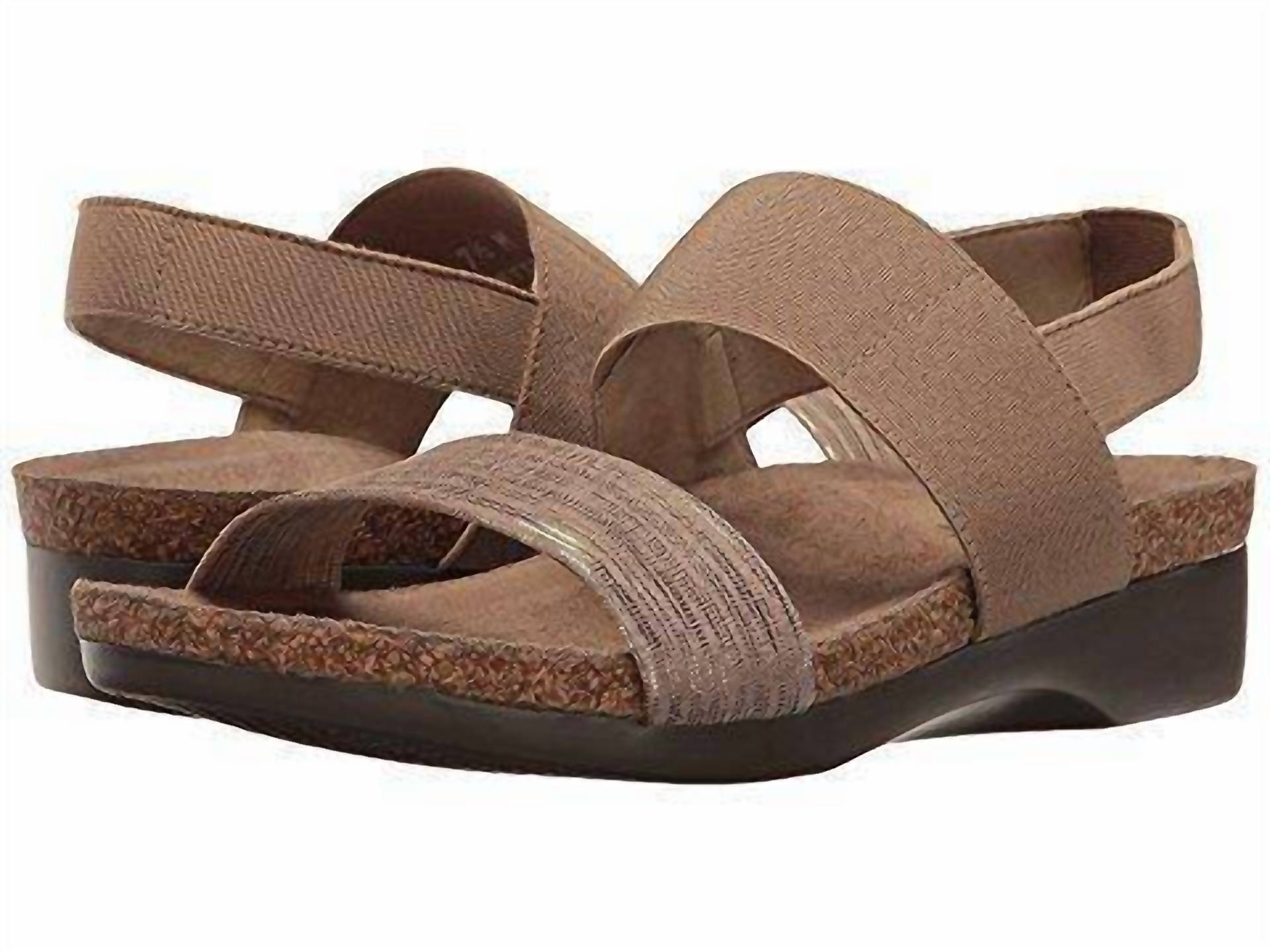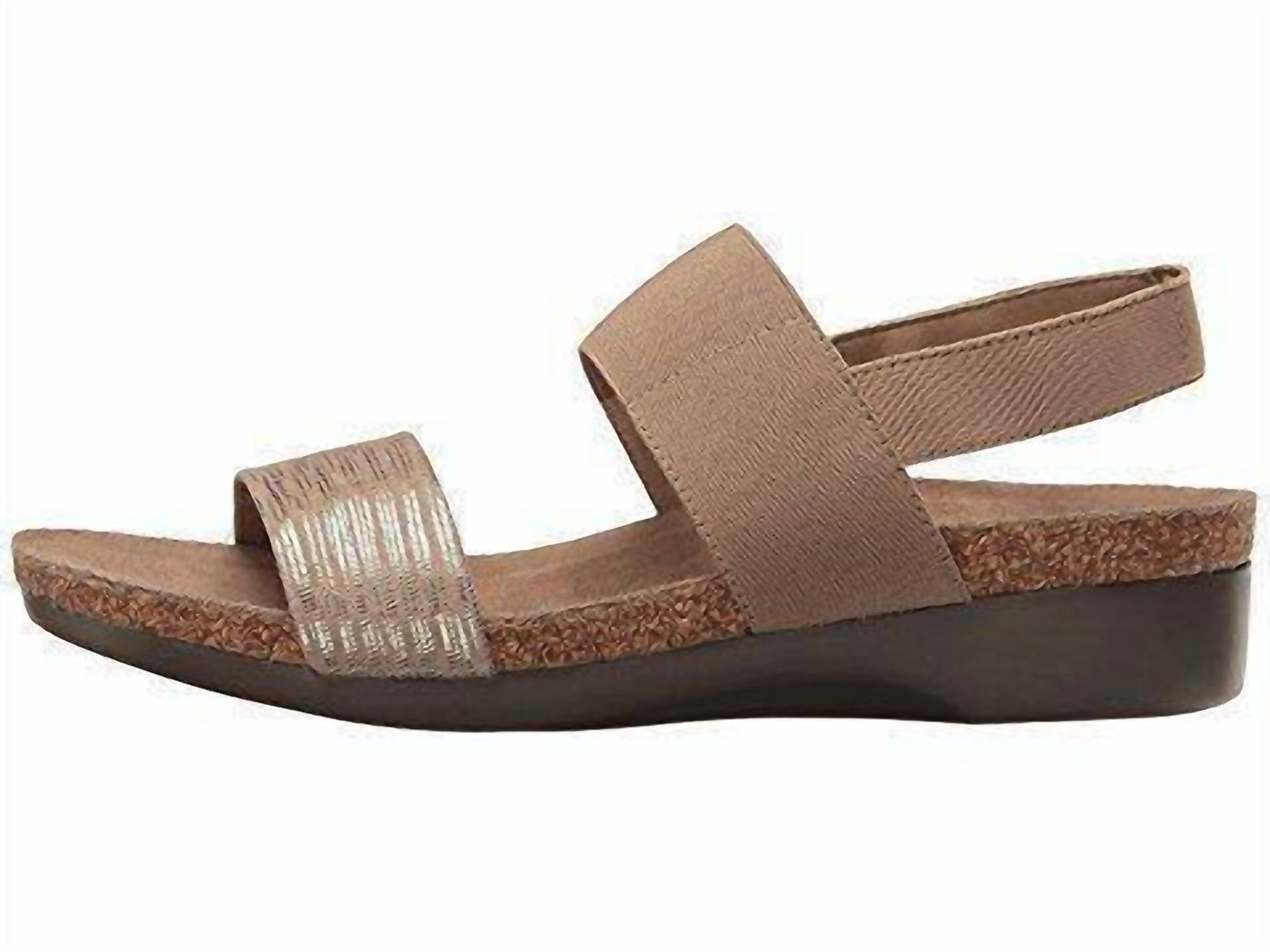 Flowy dresses, cropped pants, and even jumpsuits... this sandal works with them all! Experience effortless elegance with the Munro Women's Pisces Lizard Print Sandal, a minimalist and stylish choice in platinum for the summer season. These sling-back sandals feature a patent leather toe strap along with stretch fabric instep and sling straps, offering secure, comfortable wear. The sandals boast a soft suede-covered cork and latex footbed designed for ultimate cushioned comfort, complemented by an XL Ultralite outsole for easy movement. Perfect for Church, Mother’s Day, or any casual occasion.