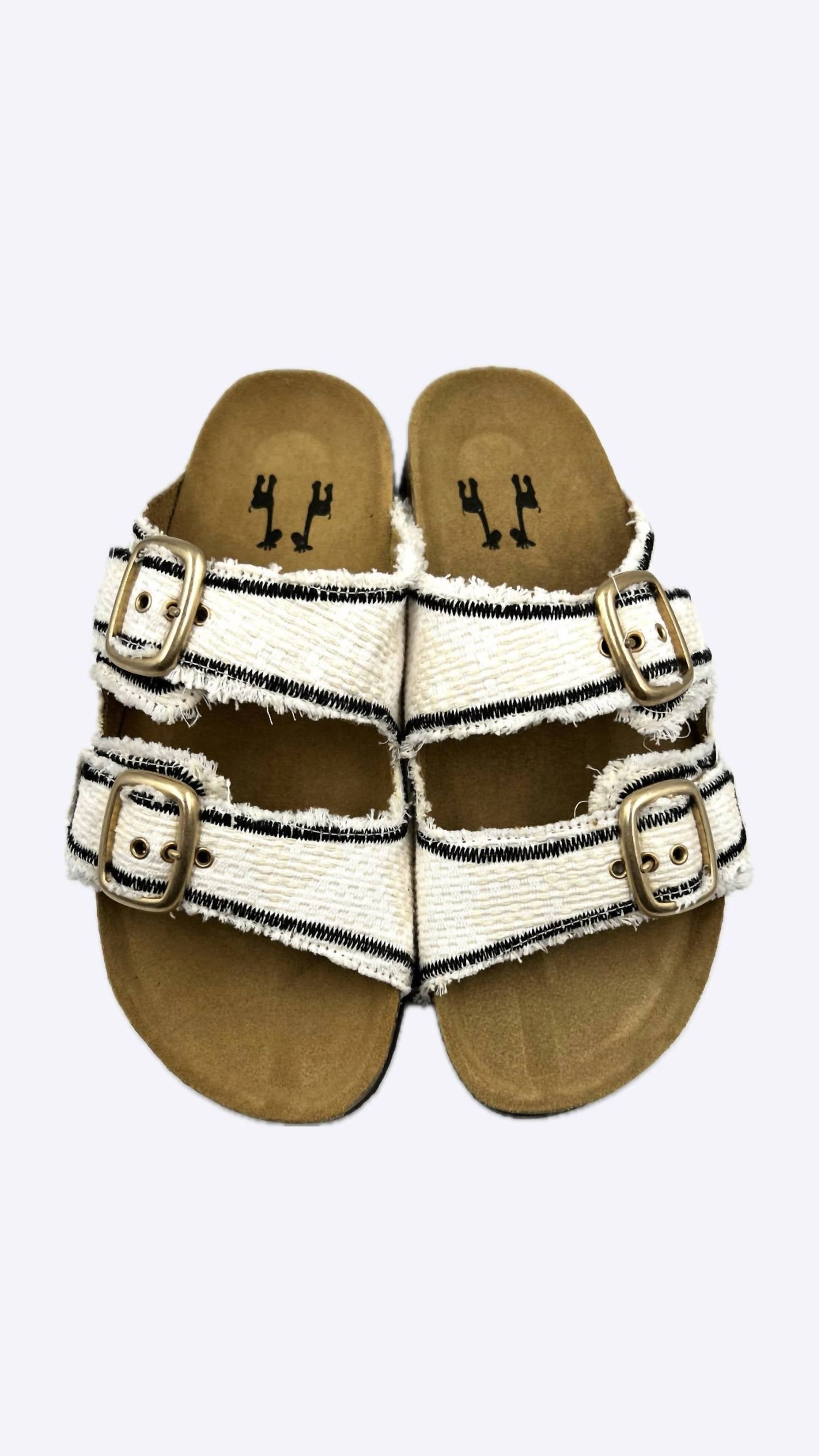 Flowy dresses, cropped pants, and even jumpsuits... this sandal works with them all! Introducing the Gemelle Sandals by NinaLeuca, a stunning example of boho chic style, perfect for your summer vacation. These sandals blend loom fabric with handcrafted embroidery and are expertly crafted from 100% cotton and leather, offering a luxurious feel. Made entirely in Italy, they feature open toes and adjustable buckles for a custom fit. Ideal for those seeking a flat heel height of 1 inch and under, these sandals epitomize effortless elegance.