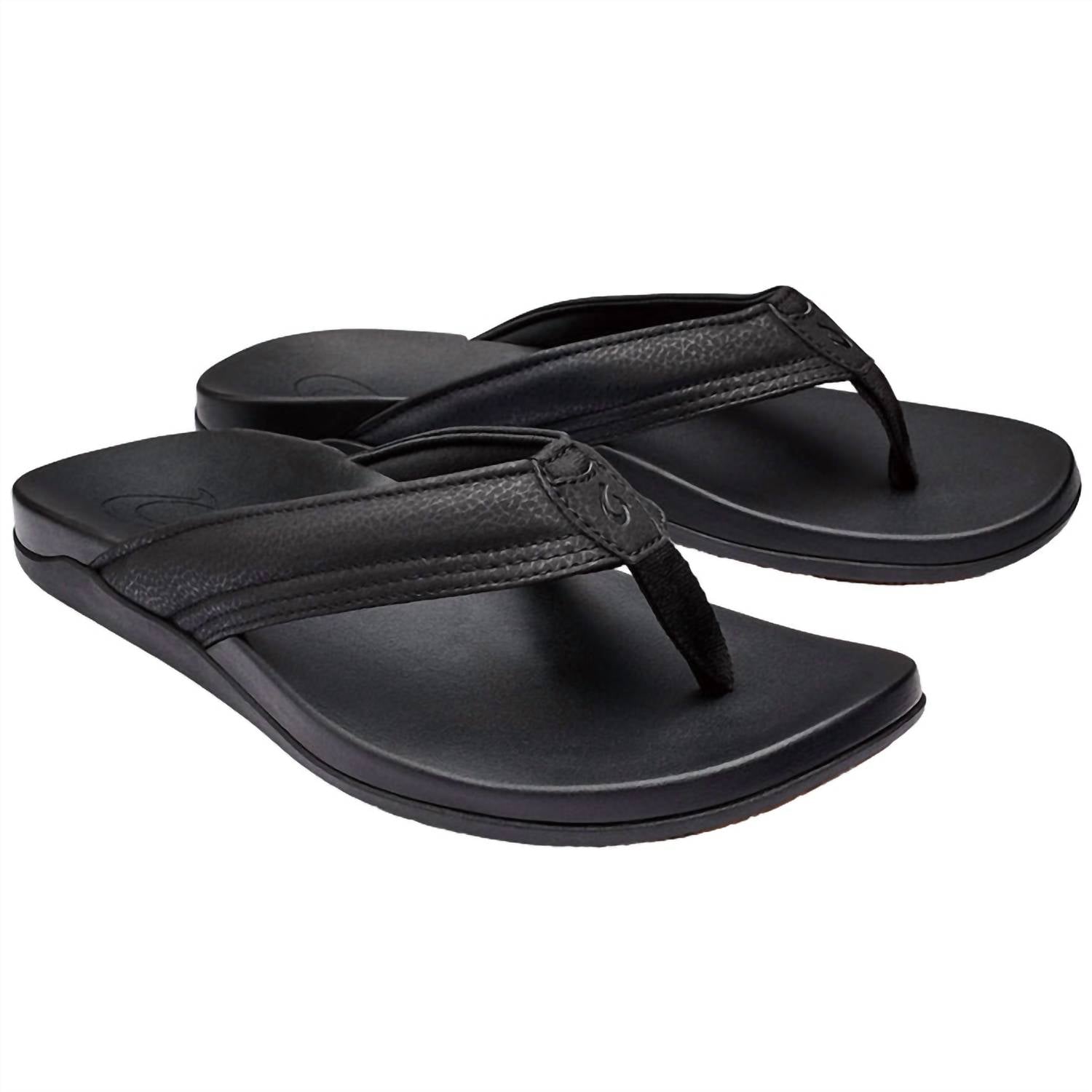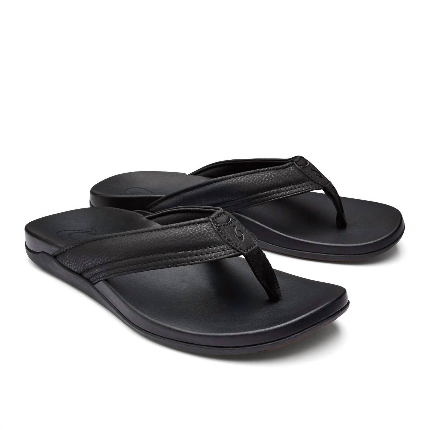 Ease into recovery with the Men's Maha Sandal by OluKai, your ultimate recovery companion. Featuring a squishy foam cushioning and an extra puffy strap, these sandals envelop your feet in comfort and relaxation. Designed for men, perfect for summer vacations, they sport an open toe and low flat heel style. Ideal for minimalist wardrobes, slide into these black sandals and experience instant relief.