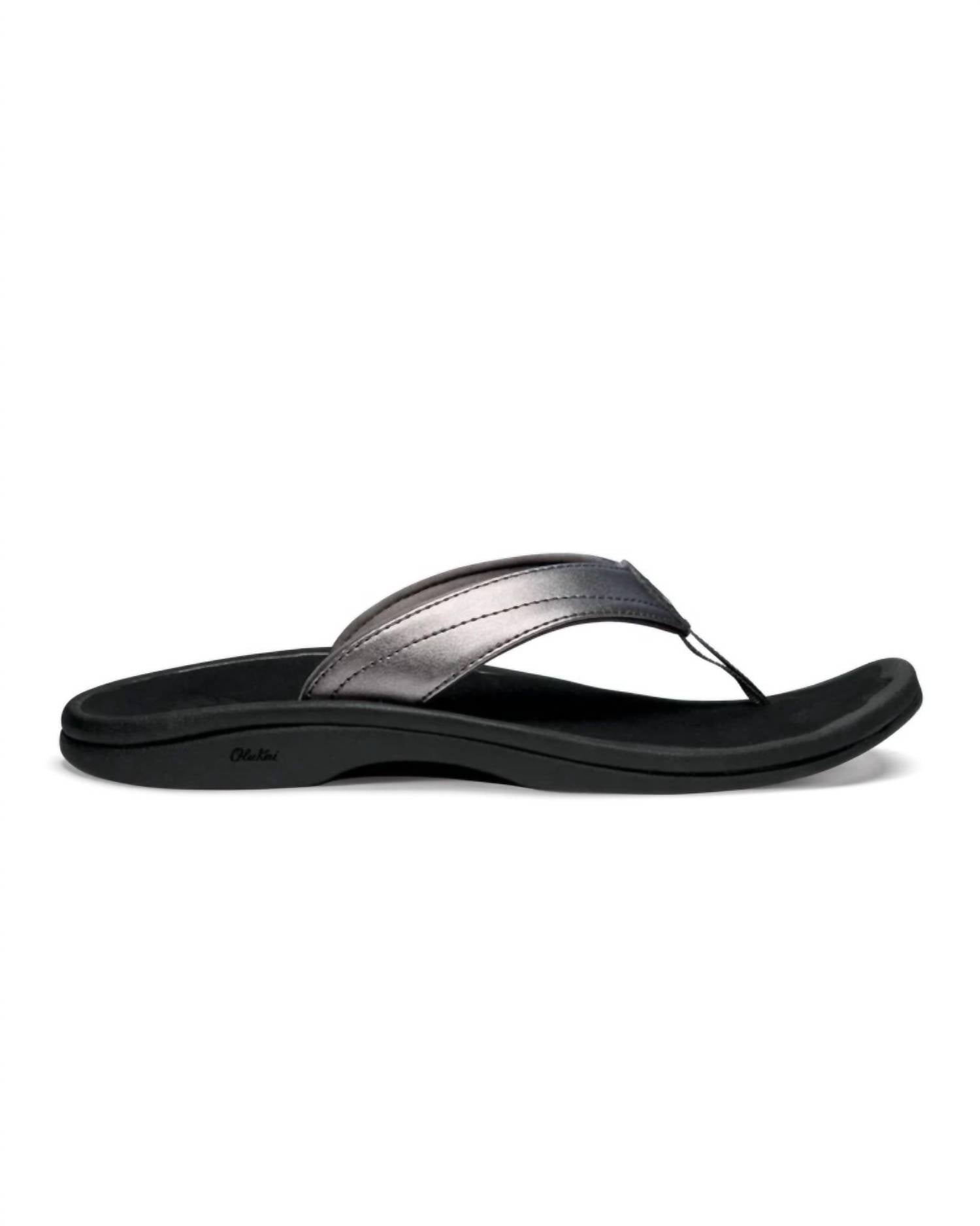 This sandal will take you from brunch to dinner and everything in between. Step into comfort and style with the Women's Ohana Sandal by OluKai in a sleek pewter hue. Designed with an open toe and flat heel, this sandal offers a minimalist aesthetic perfect for beach days. Crafted to be water-resistant, it features a smooth drop-in footbed that provides an anatomical fit, ensuring your feet feel at home. Ideal for your summer wardrobe, the Ohana effortlessly combines everyday style with ultimate comfort.