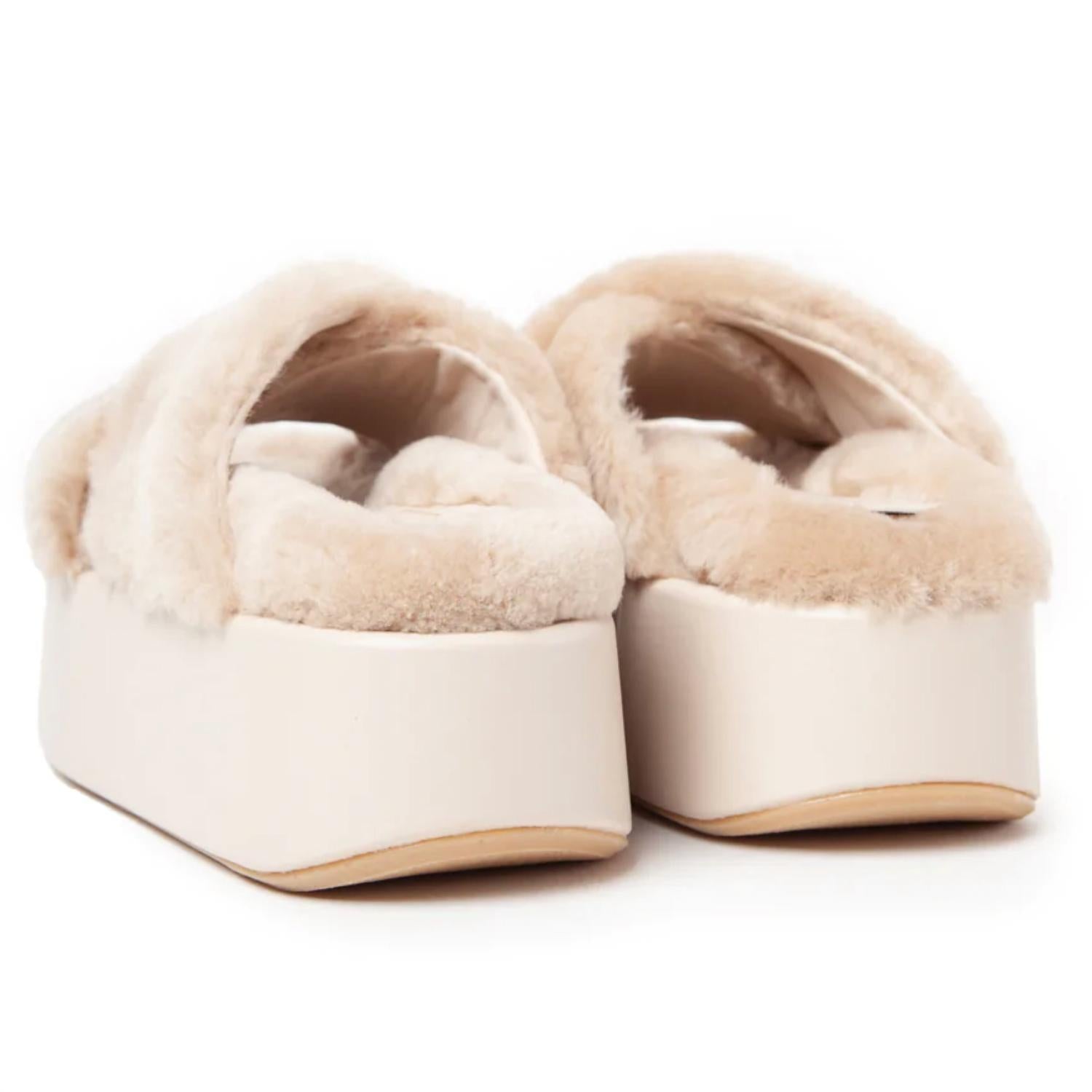 This sandal will take you from brunch to dinner and everything in between. Paloma Barcelo Nelly Mouton in Sand Sandal with Micro Sole Leather Lining Criss Cross Upper EVA Outsole Front Platform 1.4" Back Platform 1.8"