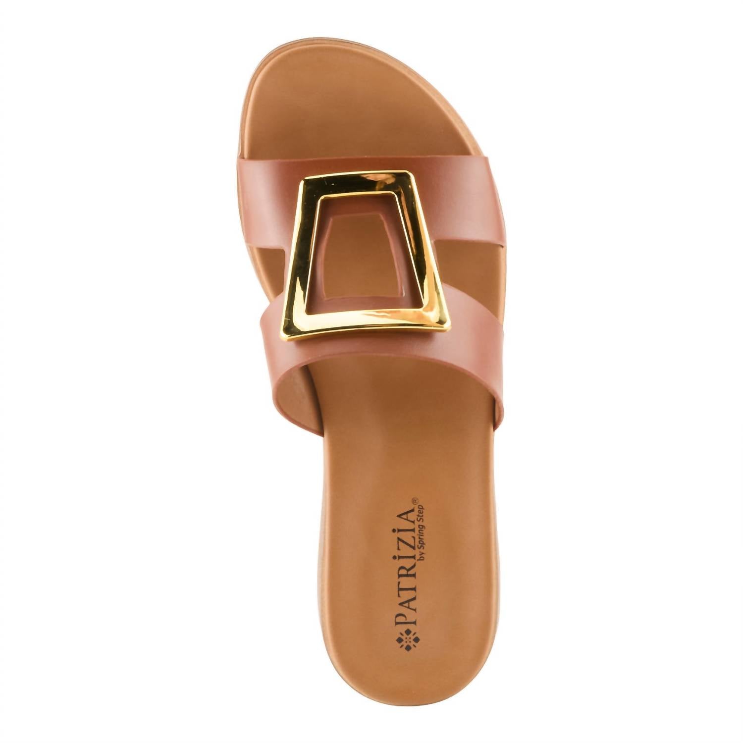Flowy dresses, cropped pants, and even jumpsuits... this sandal works with them all! Inspired by high-end designer styles, this chic slide showcases a faux leather strap accented with a striking gold detail. The wedge heel has a layered wood-effect design for subtle height, while the padded insole ensures all-day comfort and support.