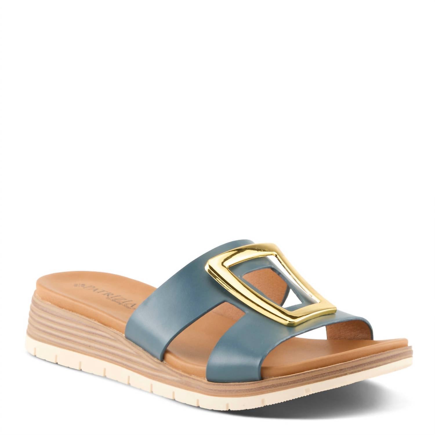 Flowy dresses, cropped pants, and even jumpsuits... this sandal works with them all! Inspired by high-end designer styles, this chic slide showcases a faux leather strap accented with a striking gold detail. The wedge heel has a layered wood-effect design for subtle height, while the padded insole ensures all-day comfort and support.