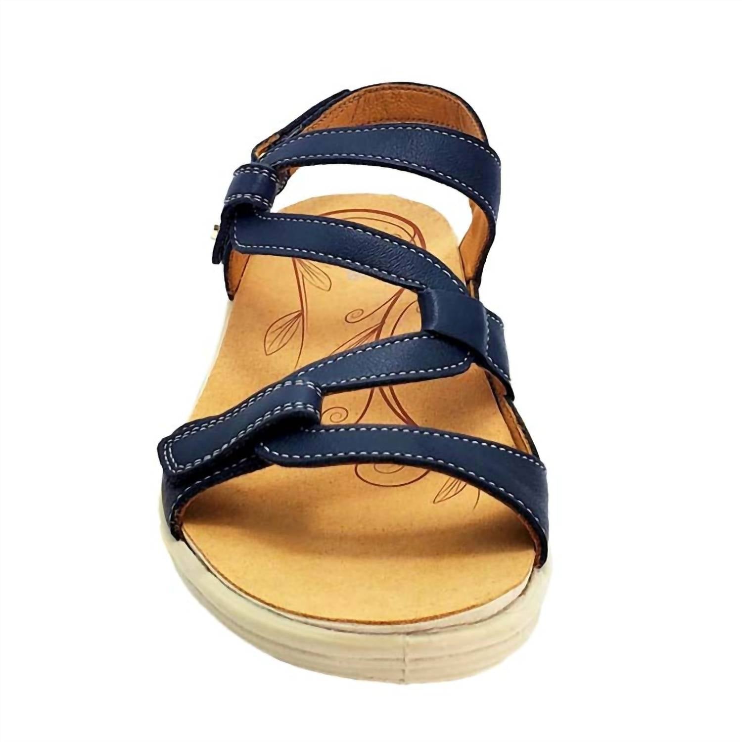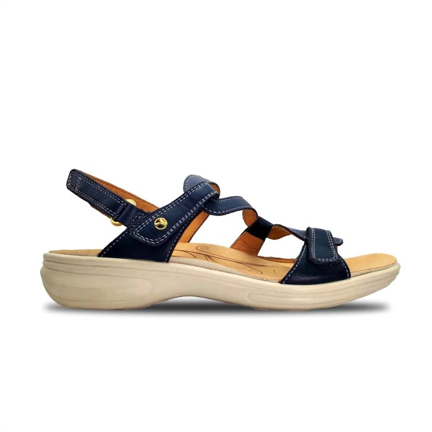 Classicly cute and all-day-wearable. We love this sandal. Step into effortless style and comfort with the Women's Emerald Sandals by Revere, crafted from premium leather. Perfect for summer travel, these sandals feature a wide fit with an open toe design in a striking Blue French color. Designed with a flat heel, these sandals provide all-day support and versatility. A must-have addition to your warm-weather wardrobe.
