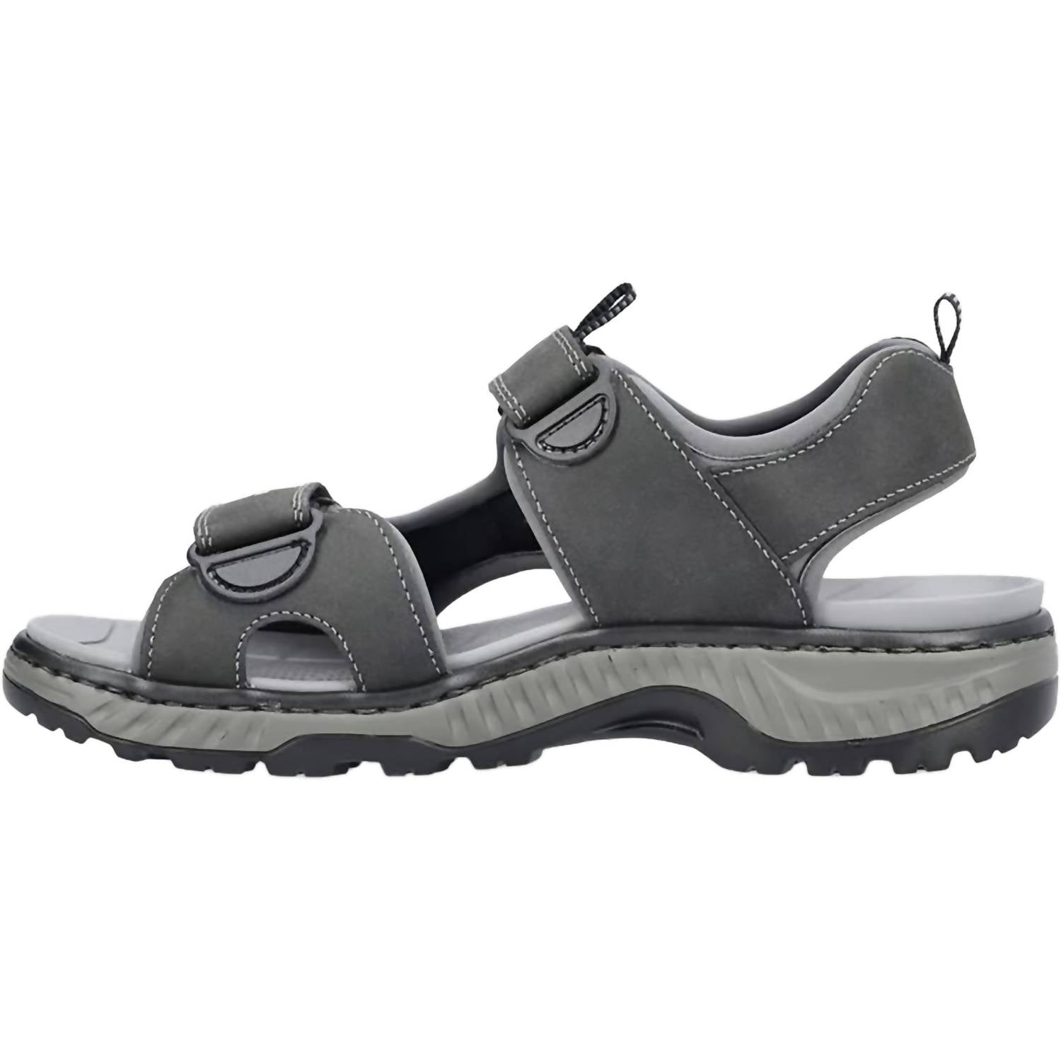 Step into comfort and style with the Men's Clemens 61 Synthetic Leather Sandal by RIEKER, perfect for your spring travel needs. These sandals boast a durable faux leather upper with a synthetic lining for maximum breathability. The Schwarz/Blei color adds a touch of sophistication, while the hook and loop Velcro fastener ensures a secure fit. Featuring an EVA outsole and a low 1.5" heel height, these sandals offer flexibility and an ultra-light feel, making every step a breeze. Ideal for medium-width feet, embrace the 90s fashion trend effortlessly.