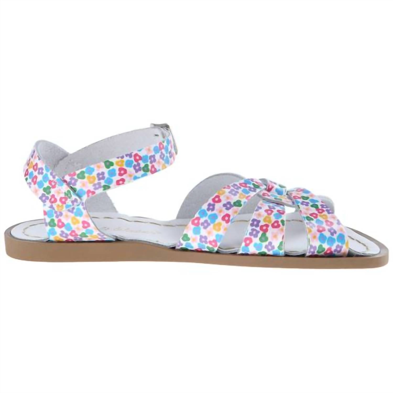 Genuine leather upper. Genuine leather insole. Rust-proof buckles. Water-friendly. Hand-assembled and stitched. Non-slip molded TPR (ThermoPlastic Rubber) sole. Recyclable.