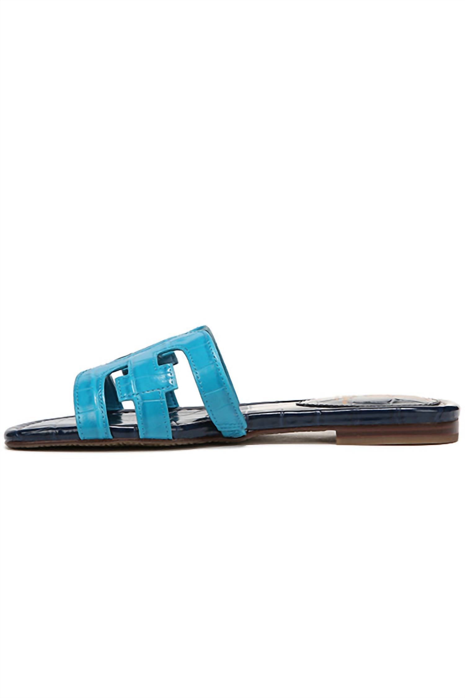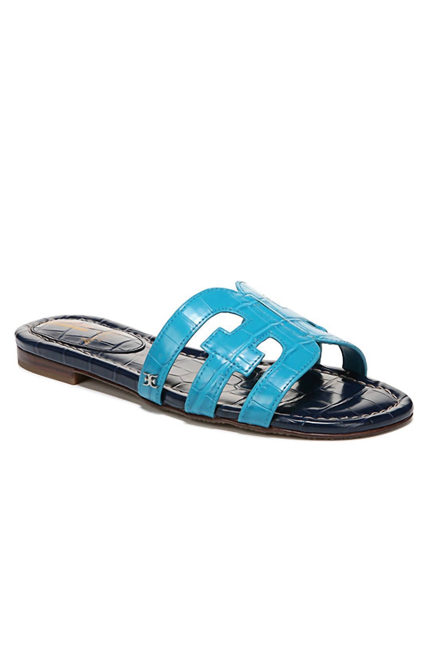 Flowy dresses, cropped pants, and even jumpsuits... this sandal works with them all! Slip into the effortless style of the Women's Bay Slide Sandal by Sam Edelman, a summer essential in chic navy leather. This versatile slide sandal features a flat heel with an open toe design, making it perfect for hot-weather adventures. With its convenient slip-on closure, this sandal embodies ease and style, from poolside lounging to casual outings. Available in leather, patent, and cork options, the Women's Bay Slide Sandal is a must-have for your summer wardrobe.
