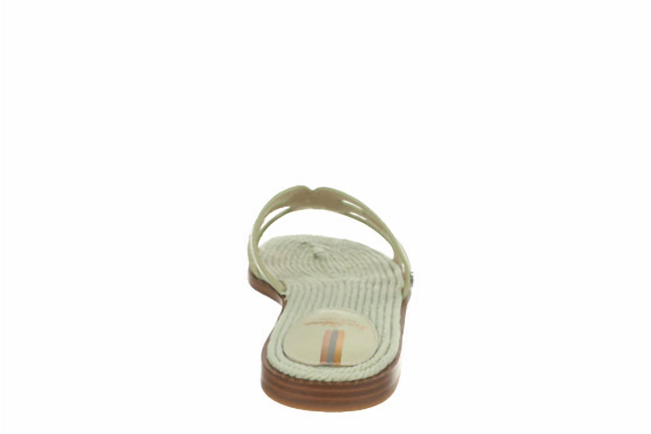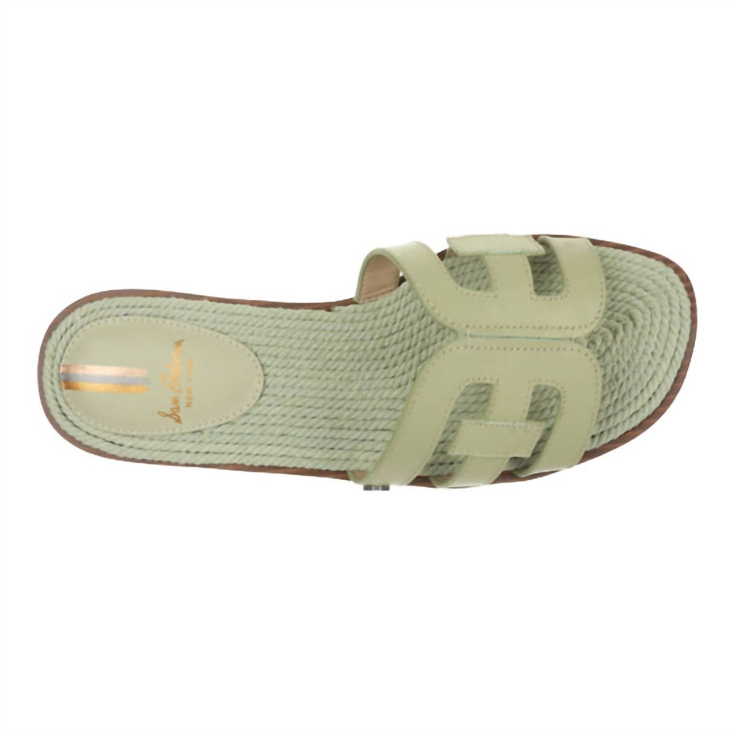 Discover the Sam Edelman Women's Bay Slide Sandal in chic Pistachio Leather, perfect for summer streetwear and travel. These versatile sandals feature an open toe and flat heel design, ensuring comfort from poolside to the polo grounds. Crafted from quality leather, they easily complement cutoff jeans or a flowing sundress. Embrace the warm weather with this timeless and fashionable choice.