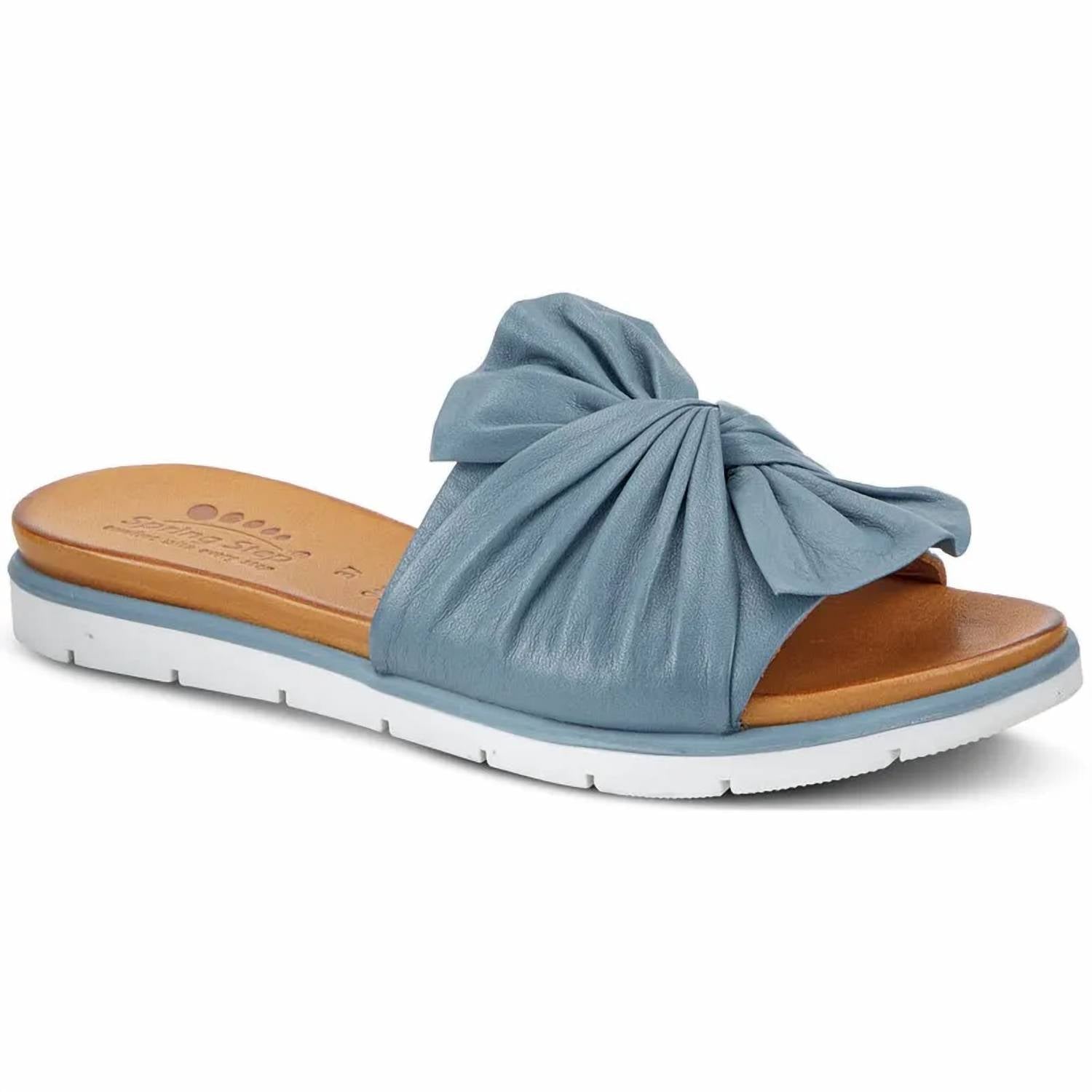 Flowy dresses, cropped pants, and even jumpsuits... this sandal works with them all! Spring Step Style: LAVONA Slip on style with this beautiful slide sandal with a leather bow twist detail. In a rainbow of colors and a flexible outsole for comfort, this is your go-to slide for the season. Small V-goring located underneath the bow allows for additional adjustability. Plus everything your foot touches is leather. Upper: Leather Lining: Leather Insole: Leather Outsole: Polyurethane Closure: Slip-on Heel Height: 1" Platform Height: 3/4" Features: - Elastic, Flexible Sole, Padded Insole Made in Turkey