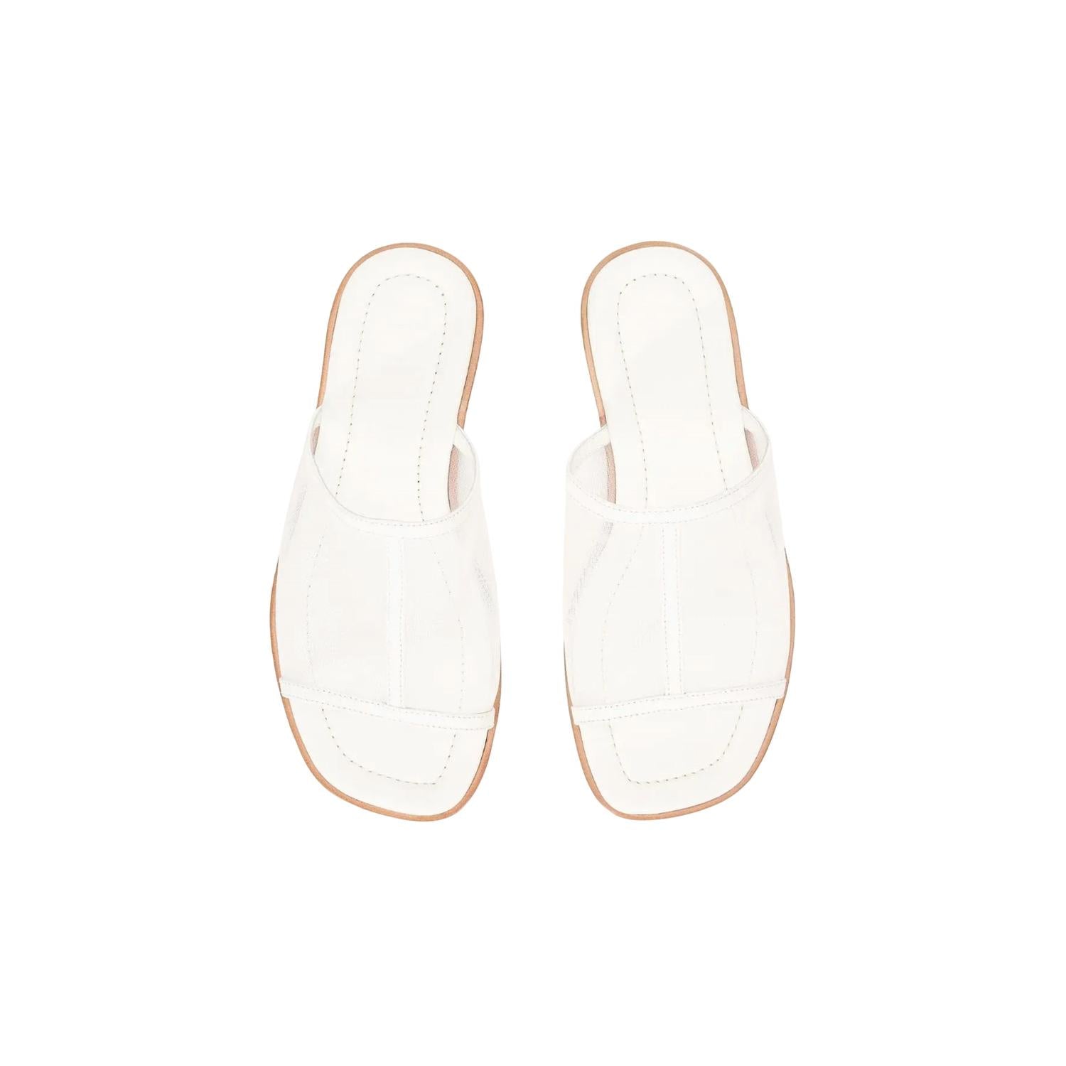 Classicly cute and all-day-wearable. We love this sandal. The STAUD Women's Alessandra Sandals are a chic choice for minimalist style, crafted with an elegant blend of materials. These slip-on sandals boast a unique nappa leather and paper mesh upper, featuring a modern square toe design. With its composition of 100% polyester for the upper and a sole made from 75% cow leather and 25% rubber, these sandals promise both comfort and durability. Perfect for holiday parties or Thanksgiving celebrations, these flat heel sandals are an effortless addition to your summer wardrobe.