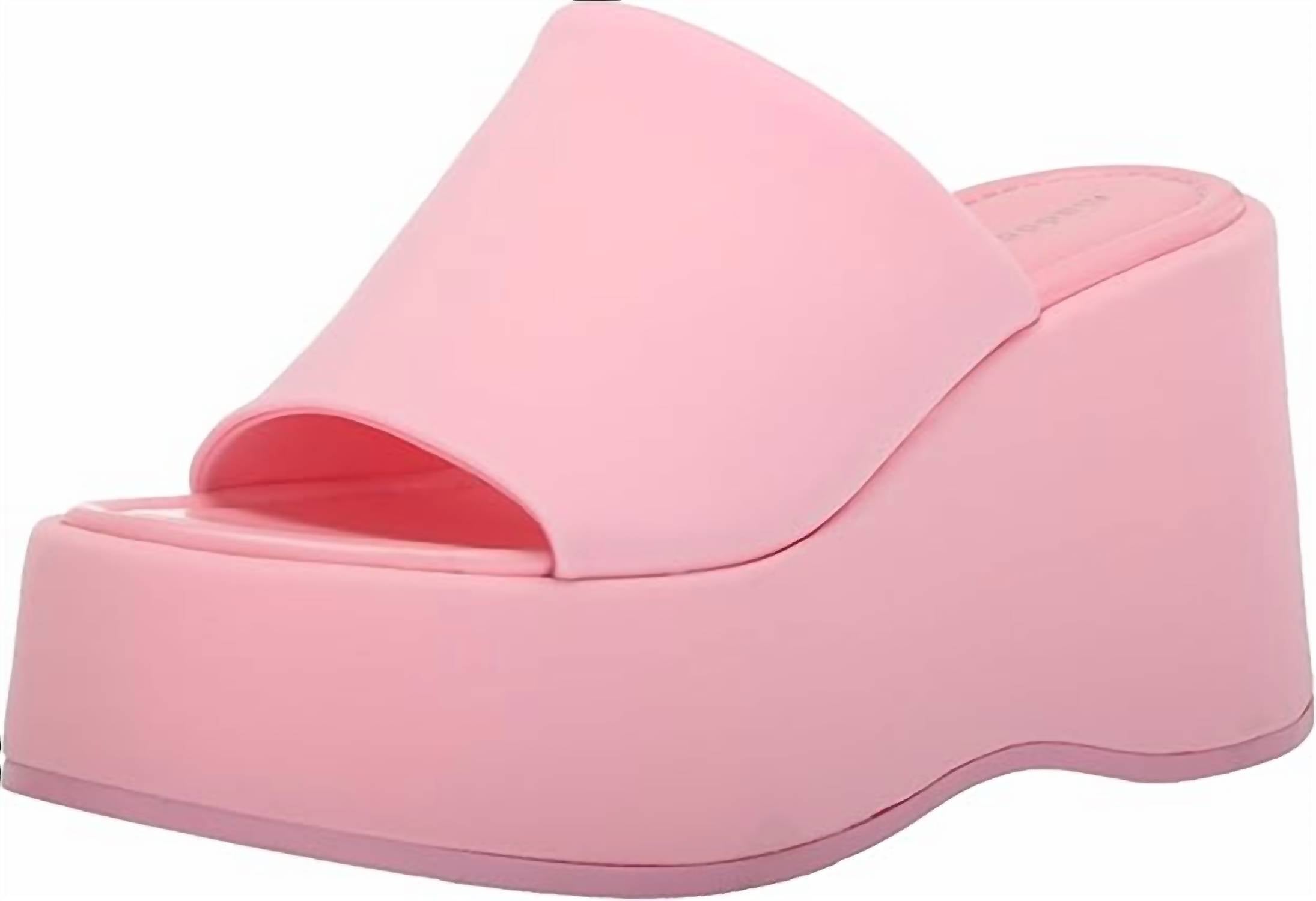 The Steve Madden Slip On Chunky Wedge Sandal in black offers an exotic edge to your ensemble with its open-toe design and wedge heel, perfect for summer outings or birthday celebrations. These women's sandals effortlessly blend style with comfort, making them a chic addition to your footwear collection. Crafted with durable single-band lycra, they ensure a secure fit and added elevation. Ideal for pairing with skinny jeans to create a standout look for any adult woman.