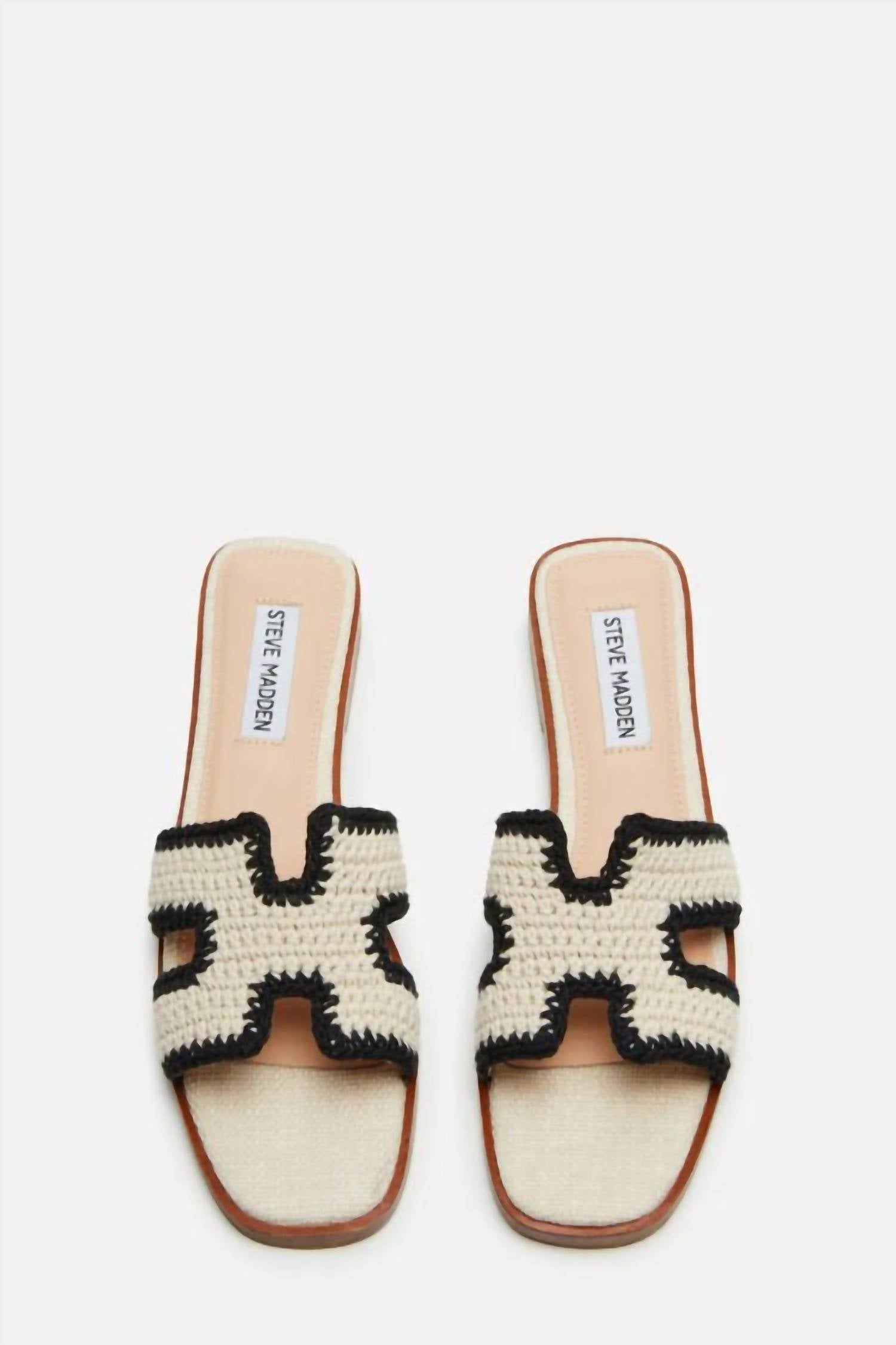 Classicly cute and all-day-wearable. We love this sandal. Introducing the Women's Hadyn Sandal by Steve Madden, designed to bring playful minimalism to your summer wardrobe. These brown slides feature a chic squared toe and eye-catching geometric cutouts on a wide single leather strap. With a comfortable 0.75" flat heel, these sandals are perfect for vacation days. Finished with a synthetic lining, sock, and sole, they ensure both style and durability.