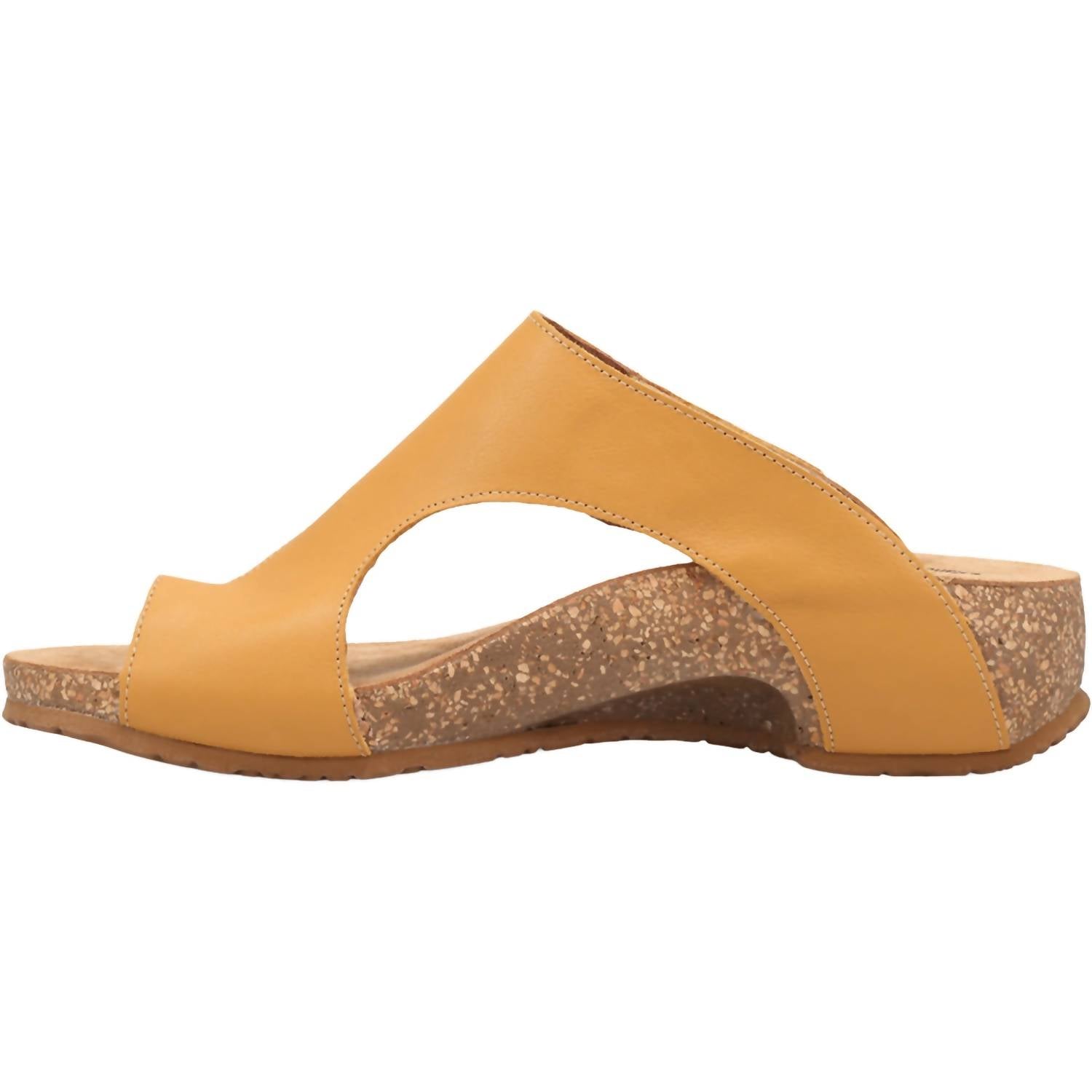Classicly cute and all-day-wearable. We love this sandal. Step into summer with the Taos Women's Loop Leather Sandal in Maize, a versatile accessory for your vacation wardrobe. These sandals feature an adjustable hook and loop closure, providing a customized fit for long walks. Crafted with European leather, they boast a suede footbed lining, complemented by a cushioned cork-PU footbed and supportive arch and metatarsal design. Made in Spain, they sit on a 1.75" wedge heel and are finished with a flexible, durable rubber outsole for outstanding stability and comfort.