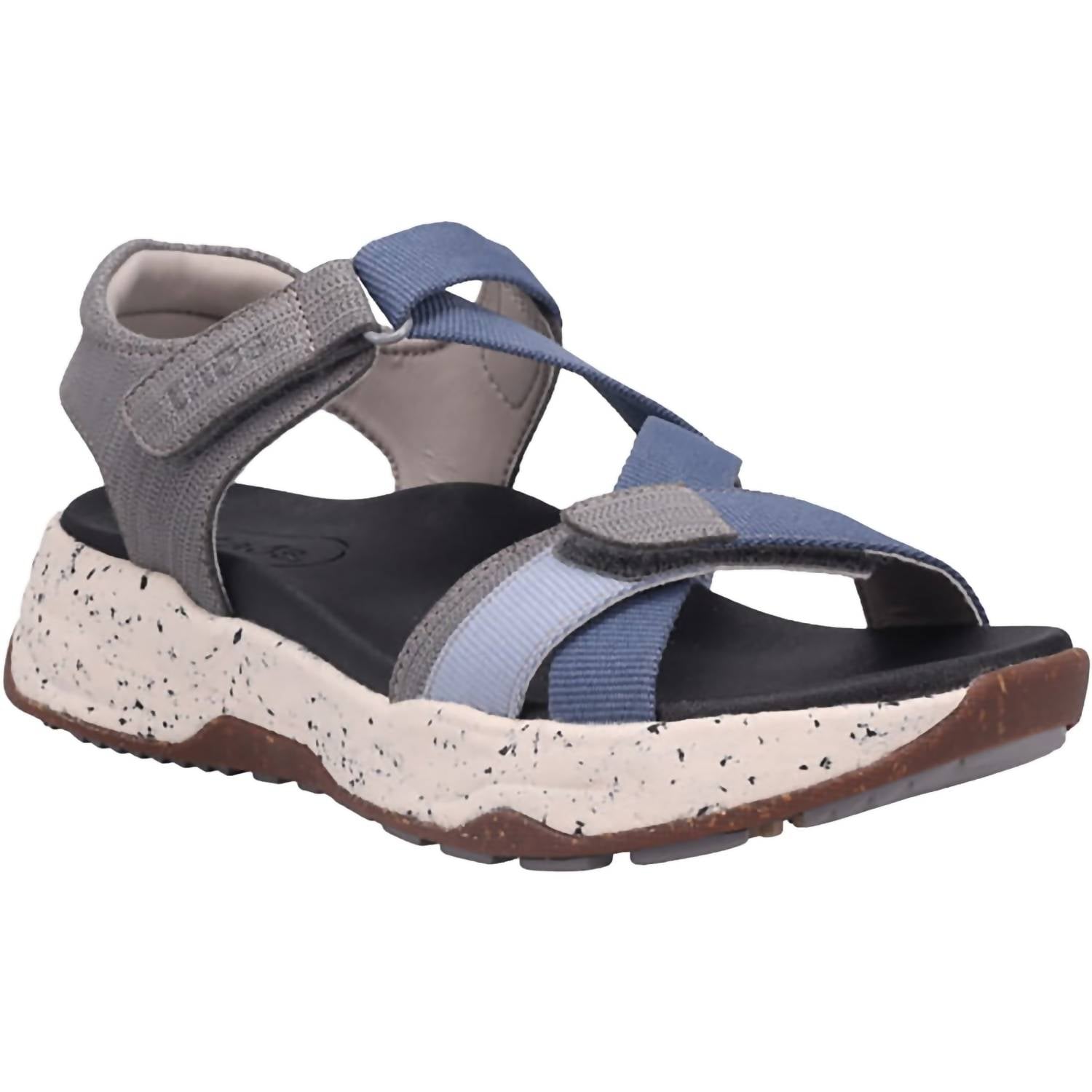 Step into summer adventures with the Taos Super Z Women's Sandal in Blue Multi Leather/Nylon. This water-friendly sandal is crafted from premium leather and nylon, with a supportive polyurethane footbed lining and a rubber outsole, promising comfort on the go. The sandal offers forefoot cushioning and arch support with a 1 3/8" wedge heel for added style. Ideal for travel and the summer season, it embodies 90s fashion trends and is perfect for medium-width feet.