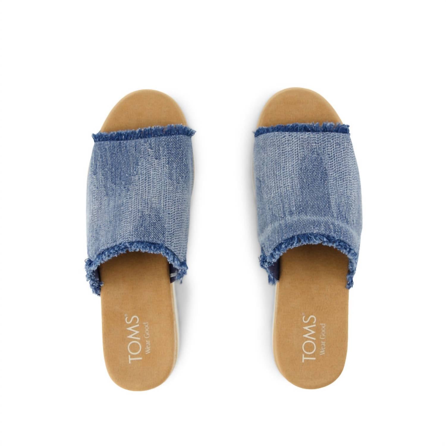 Slip them on and go! Our best-selling wedge sandal gets a fresh update in this easy mule style. The mid-height platform features a rope-wrapped sole and a snug denim upper with frayed edges for a laid-back, textured look. Perfect for pairing with your go-to warm-weather outfits, these mules combine casual style with everyday comfort.