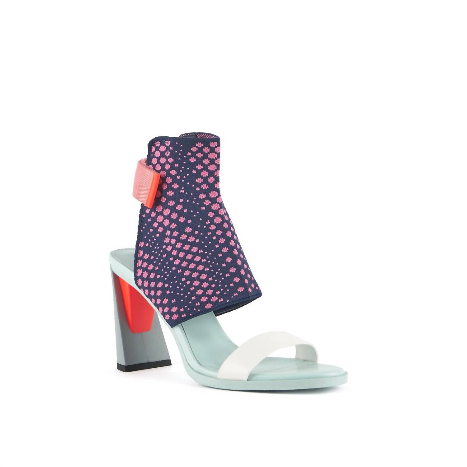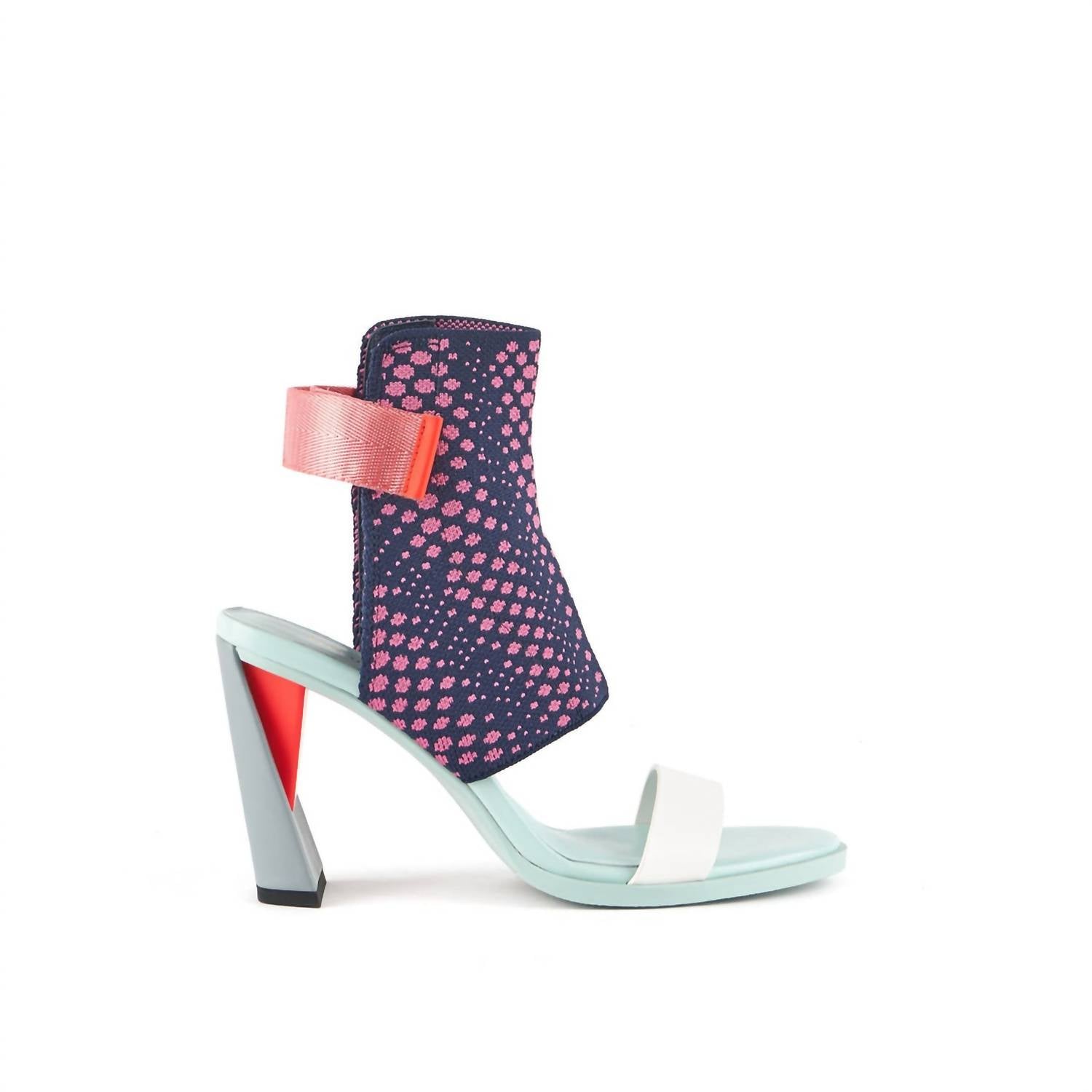 Step into elegance with the Women’s Zink Fab High Sandals by United Nude, a perfect blend of fashion and comfort. These Moonset sandals feature an adjustable slingback strap and a graphic woven sock with a knit fabric, nappa leather upper, and nylon webbing, complemented by United Nude's signature flared block heel. Heel height is an eye-catching 90mm/3.6in. The open-toe design makes these sandals ideal for a cocktail party during the summer season, offering a nod to the Y2K trend.