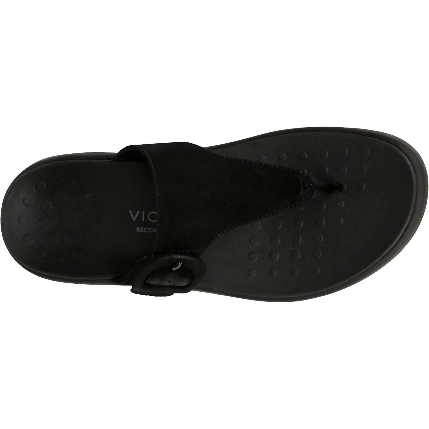 Flowy dresses, cropped pants, and even jumpsuits... this sandal works with them all! Step into ultimate relaxation with the Vionic Women's Activate Rx Sandals in Black Suede, engineered for optimal comfort and recovery. Featuring a premium suede upper and durable rubber outsole, these sandals include an adjustable hook and loop strap for a perfect fit. The podiatrist-developed EVA footbed, with VIO MOTION Technology, provides contoured arch support, shock-absorbing cushioning, and a massaging texturized surface for soothing relief. For an optimal experience, wear them for a few hours initially to allow your feet to adapt, ensuring comfort and support within 1-2 weeks. Imported and designed with a Boho Chic flair, these sandals are perfect for a summer vacation.