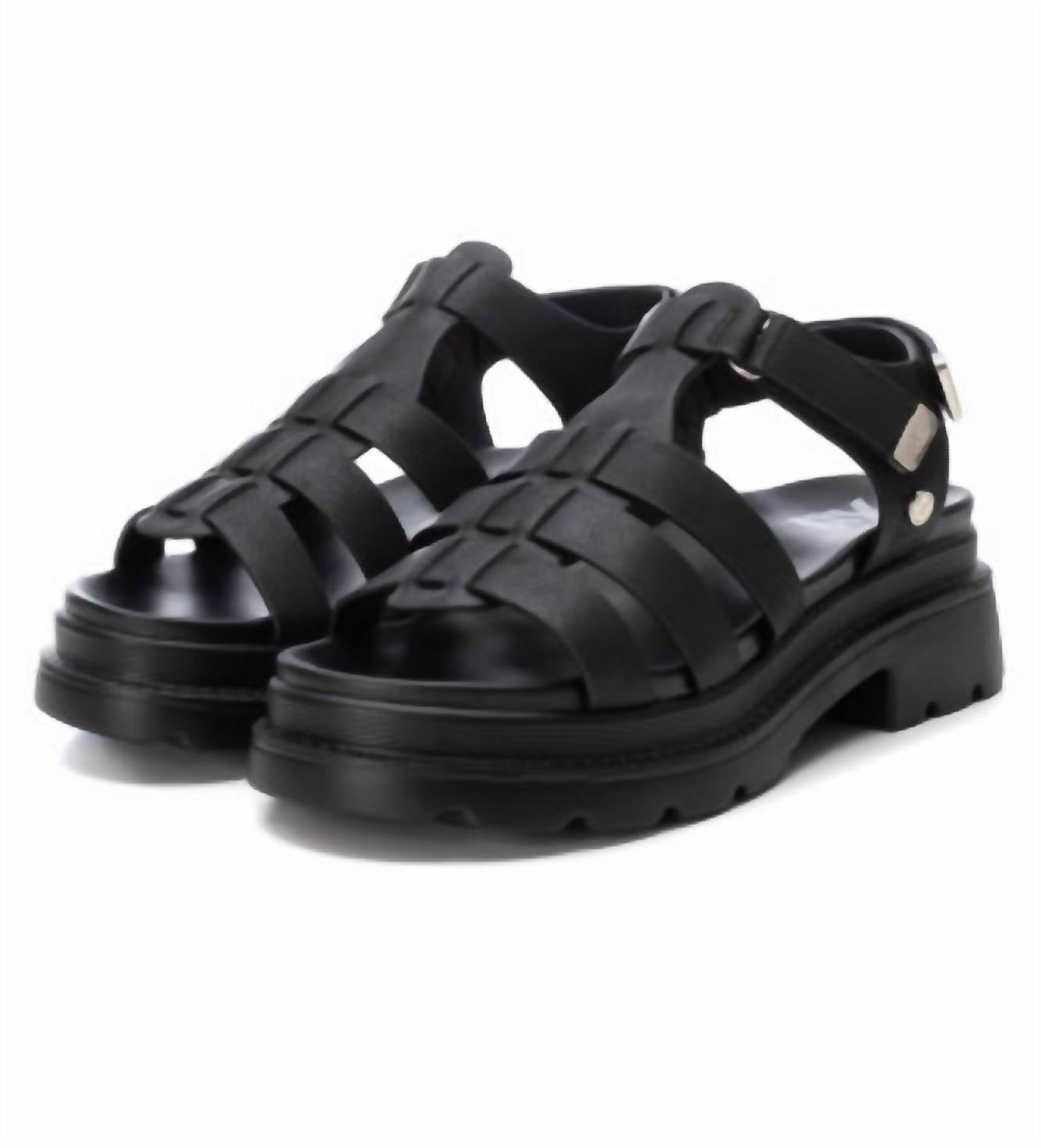 This Chunky Sandal is made from high-quality faux leather with a 1-inch chunky heel. Features a round toe, secure adherent strap closures, and a non-slip rubber track sole. PETA-certified vegan and perfect for versatile, all-day wear.