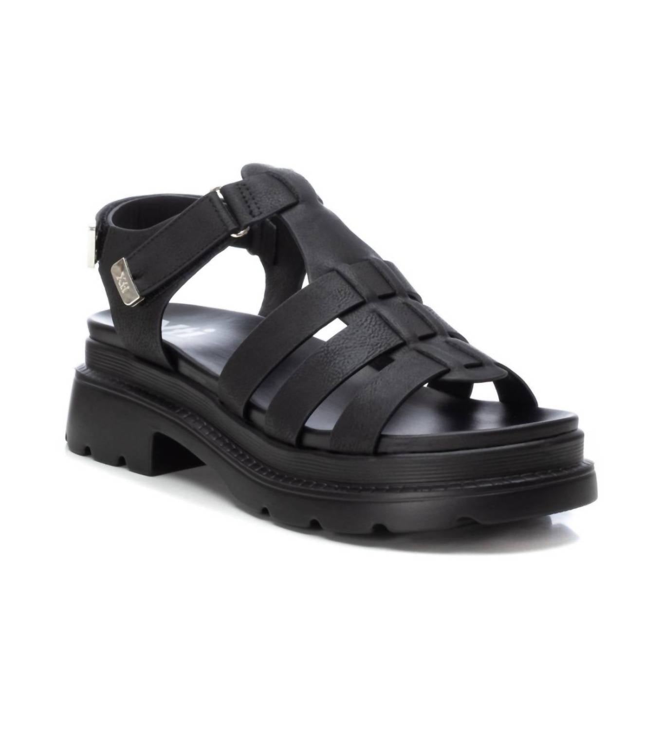 This sandal will take you from brunch to dinner and everything in between. This Chunky Sandal is made from high-quality faux leather with a 1-inch chunky heel. Features a round toe, secure adherent strap closures, and a non-slip rubber track sole. PETA-certified vegan and perfect for versatile, all-day wear.