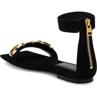 Good American - Women's Square Toe Ankle Strap Sandals With Gold Chain Detail